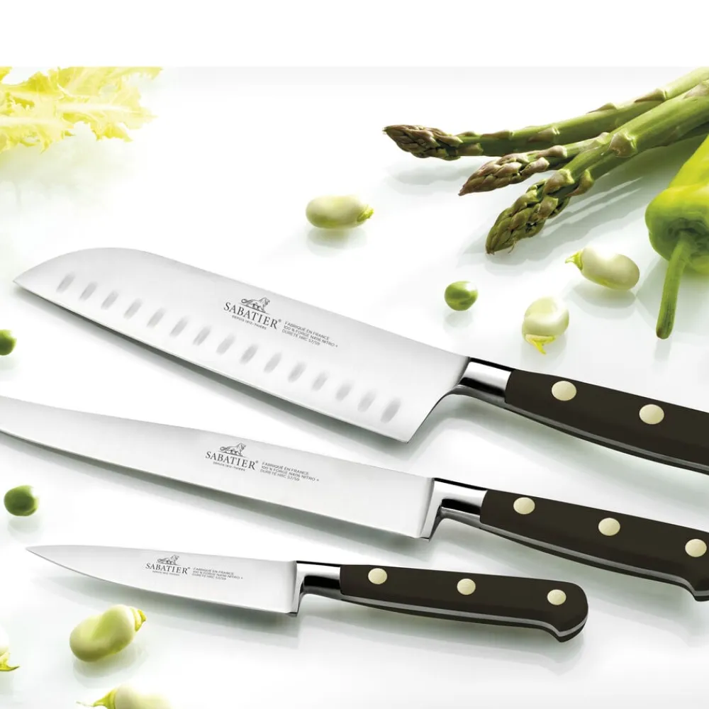 Knivserien Ideal fra Lion Sabatier er helsmedet af ét stykke stål med optimal vægt og balance, der ligger behageligt i hånden.