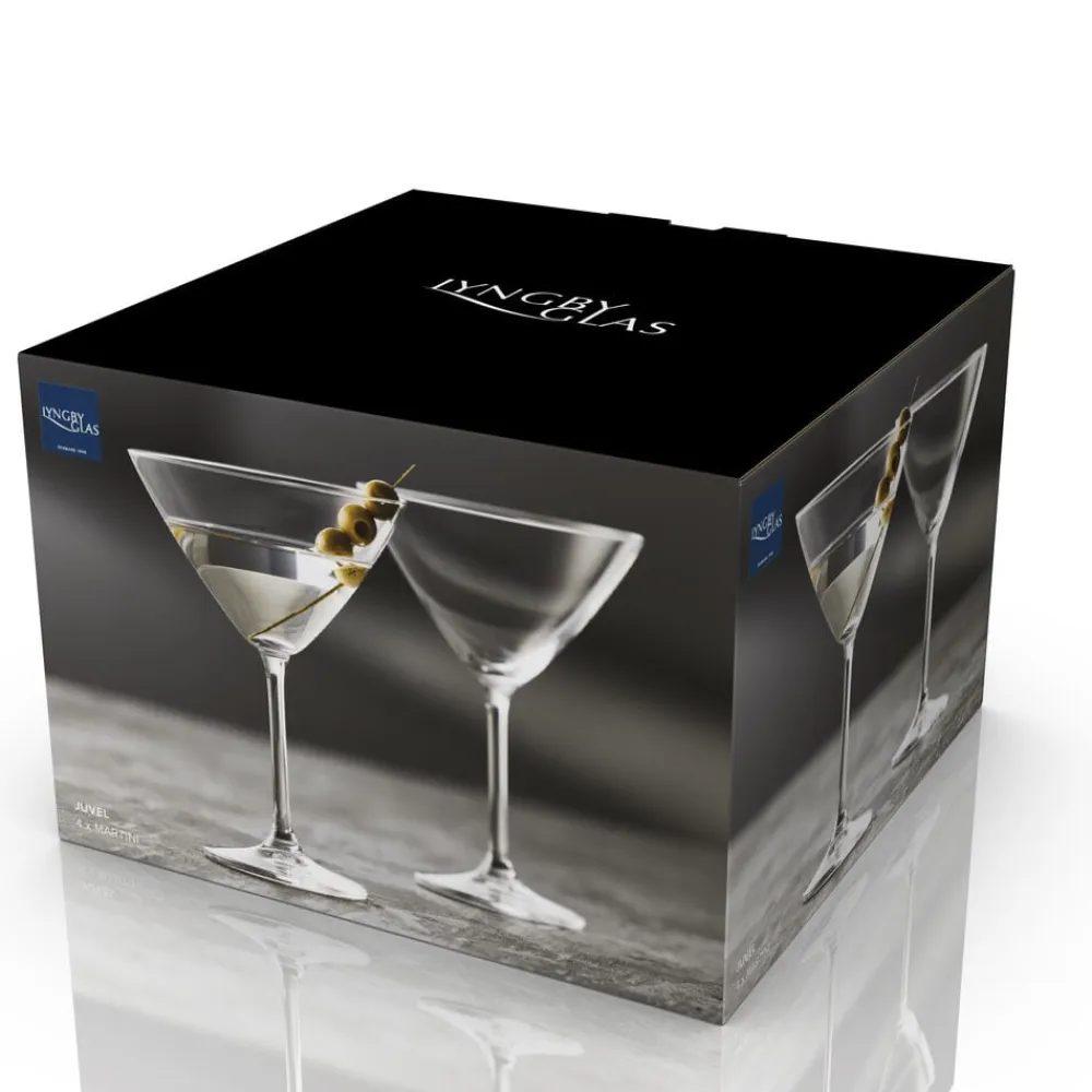 Juvel Martiniglas i den kendte klassiske og stilfulde facon. Server James Bonds yndlingscocktail i det smukke, klare glas, som naturligvis også løfter en cosmopolitan og utallige andre cocktails til et højere niveau. 28 cl. 4 stk. 17,5 cm.