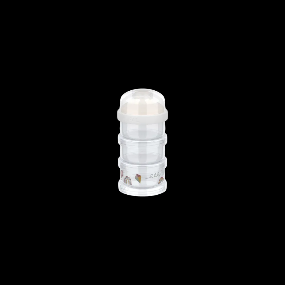Med det tredelte Mepal Mio mælkepulvertårn er det nemt og hygiejnisk at have mælkepulver med dig overalt. De tre stabelbare beholdere på hver 120 ml er lukkes individuelt med skruelåg. Toppen har lufttæt forsegling, og den smarte hældetud gør det let at hælde mælkepulver i en flaske. Det kompakte design er ideelt til rejser og nemt at rengøre i opvaskemaskinen. Mælkepulvertårnet tåler desuden køleskab, fryser og mikroovn. Diameter 7,8 cm, højde 15,7 cm. PP-plast.