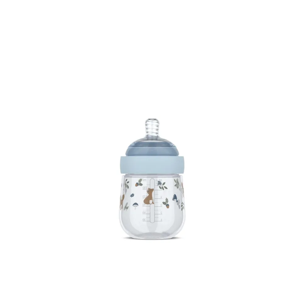 Mio sutteflaske giver din baby komfort og dig maksimal tryghed. Suttedelen er lavet af medicinsk silikone og designet til at føles naturlig og velkendt. Uanset om baby ligger trygt i mors eller fars arme, er det roligt og behageligt at drikke af Mio sutteflasken.