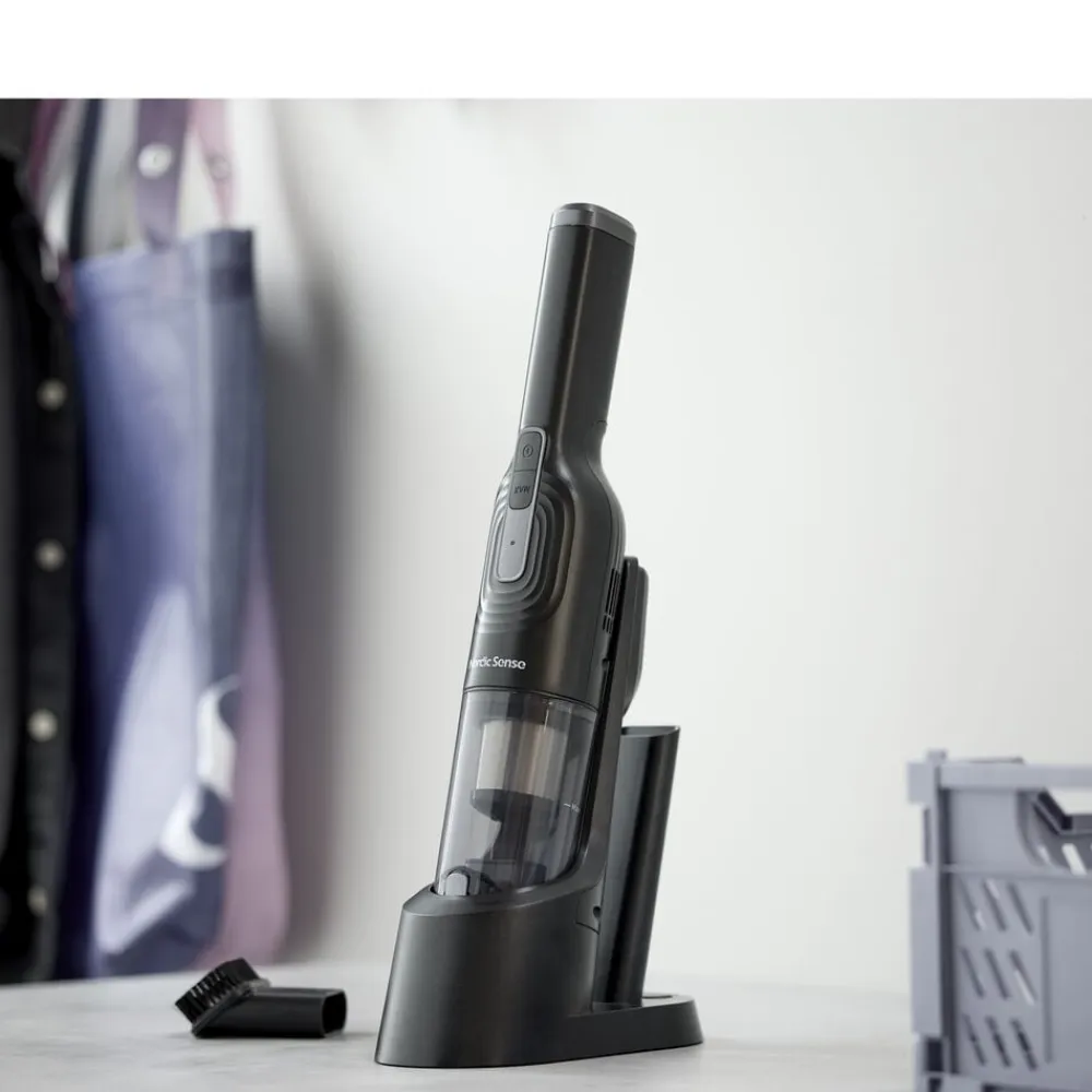 Gør rengøringen nem, effektiv og ubesværet. Udstyret med en 80 watt motor, tilbyder denne kompakte og lette håndstøvsuger to sugestyrker til forskellige rengøringsbehov – en standardindstilling til almindelige rengøringsopgaver og en boost-funktion som er ideel til mere udfordrende områder. Den er også udstyret med HEPA-filter og støvopsamler. Der medfølger to mundstykker for yderligere alsidighed – et mundstykke med børste til sarte overflader og et mundstykke med fuge til smalle områder.