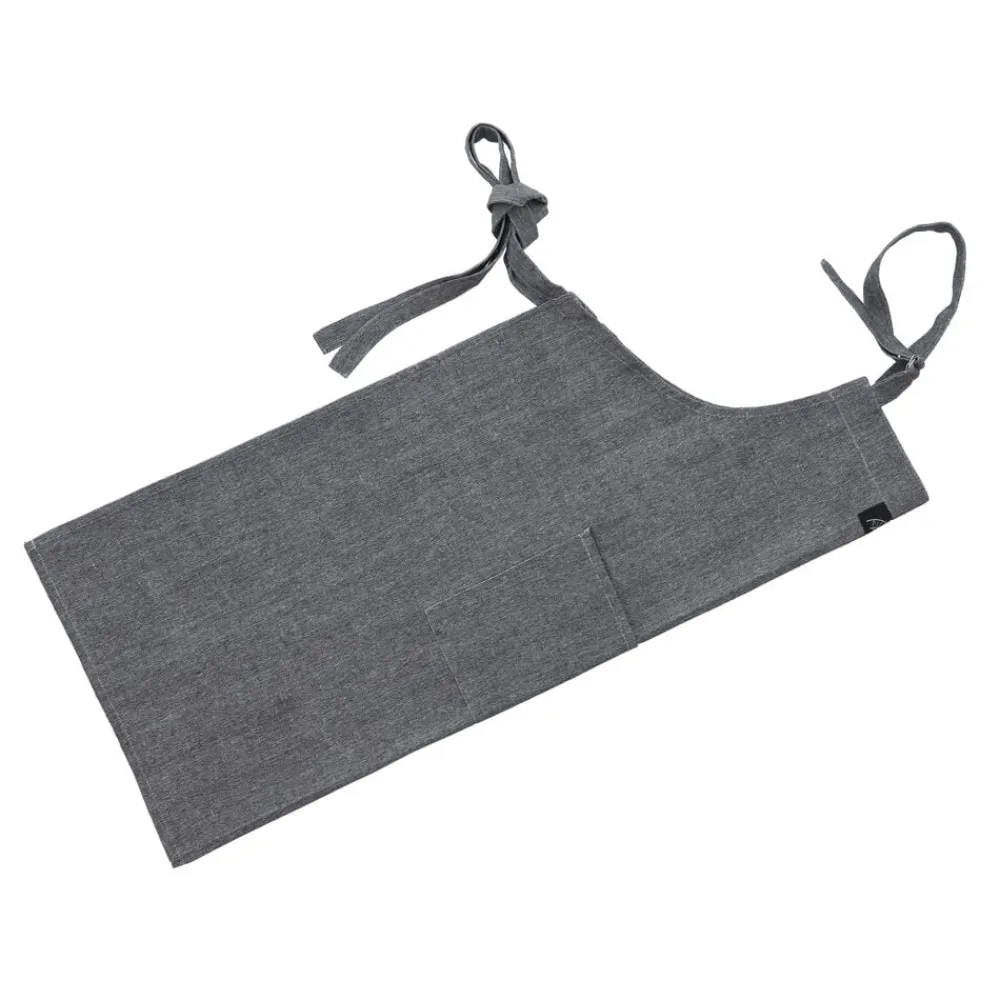 Forklædet er fremstillet af genanvendte stofrester, der ellers ville være blevet kasseret. Stofresterne sorteres efter farve, trevles til tekstilfibre og bliver derefter spundet og vævet igen. Derfor kan der være nuanceforskelle fra parti til parti.