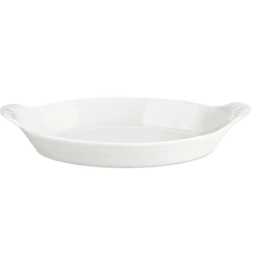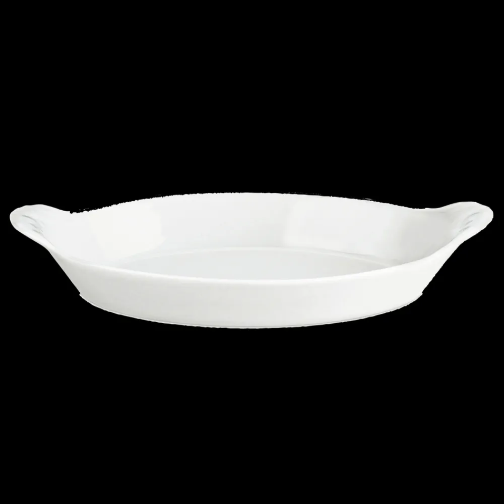 Klassisk oval serveringstallerken på 23 x 13 cm med håndtag, der også kaldes en ”æggepande”. Kan sættes direkte på komfuret og i ovnen.