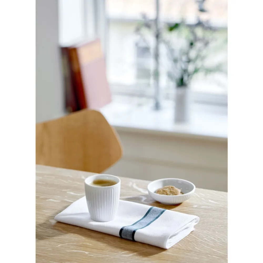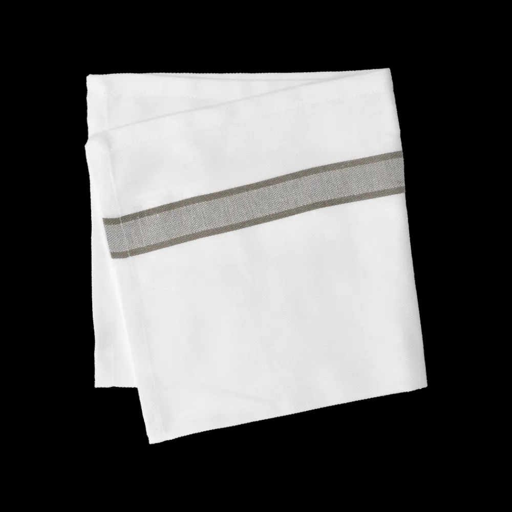 Stofserviet fremstillet i 100 % bomuld. Det klassiske hvide stof kombineret med en enkel farvet stribe giver mulighed for et let og personligt udtryk. Servietten er blød, behagelig og nem at folde, så du kan variere udtrykket, når borddækningen skal have lidt ekstra opmærksomhed.
