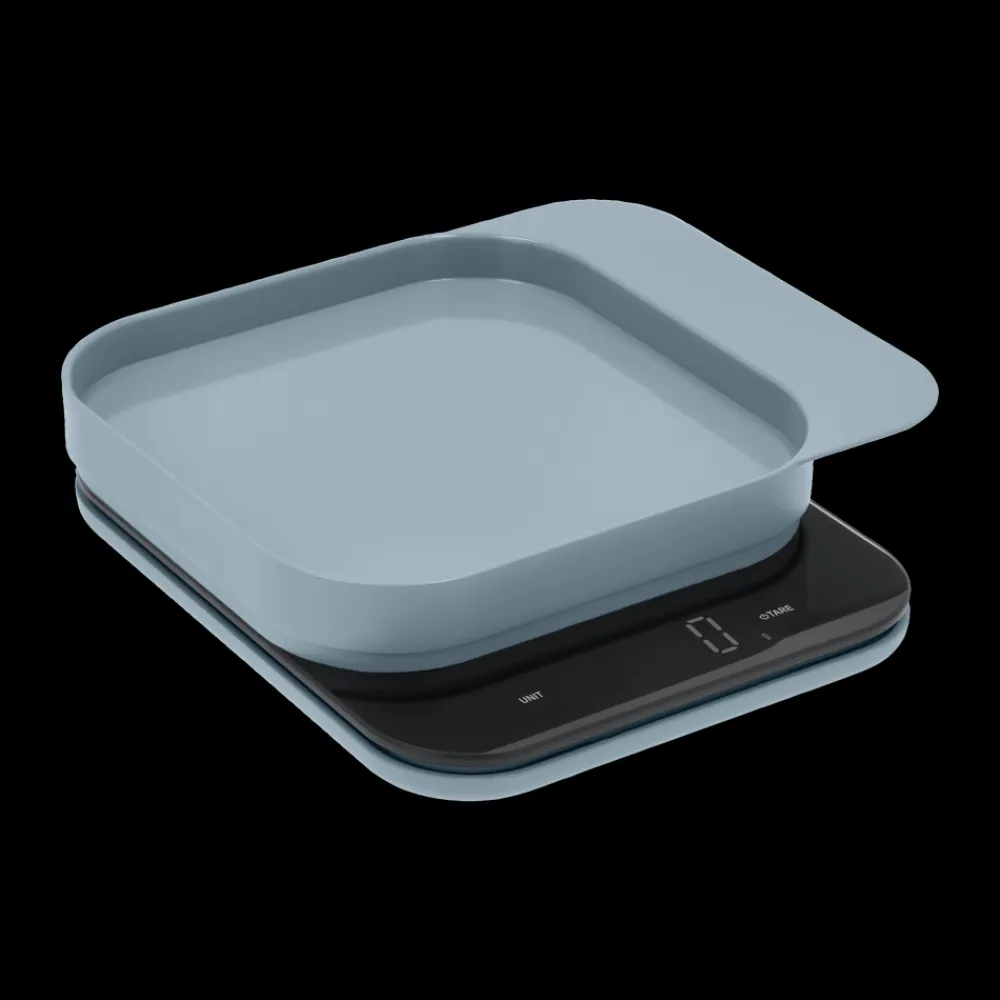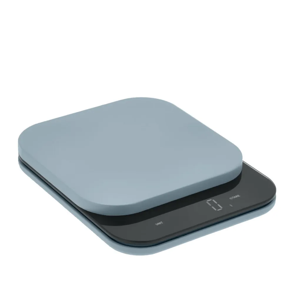 Der kan skiftes mellem flere måleenheder, g, kg, oz, lb, ml, fl oz, og vægten har tarafunktion. Tændes manuelt og slukker automatisk. Fire L-formede silikonefødder i samme farve som vægten er placeret under bunden.