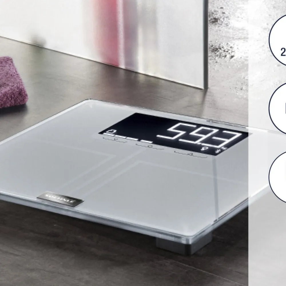 Vægten vejer op til 200 kg med 100 grams intervaller og genkender op til 8 personer.