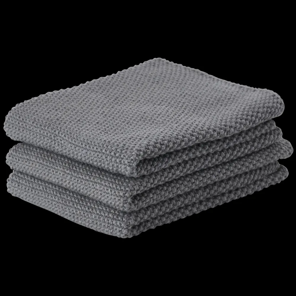 Zones strikkede karklude i 100 % bomuld er helt igennem naturlige – dejligt bløde, praktiske, stærke og uden skyggen af kemikalier og mikroplastik. De er uundværlige i køkkenet, og de fås i bløde sæt med 3 stk. 27 x 27 cm.
