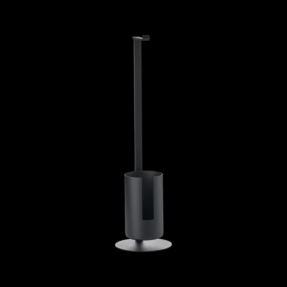 Rulleholderen er udført aluminium og matcher stilen i resten af RIM-serien. Den har en enkel silhuet og er let at tørre af og holde ren. I toppen finder du et diskret greb, der gør den nem at flytte. I bunden er der praktisk gjort plads til opbevaring af to ekstra ruller.