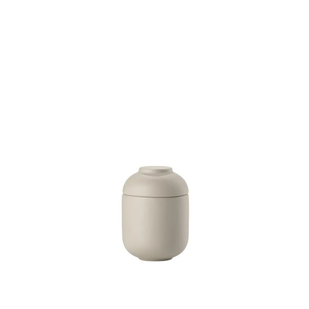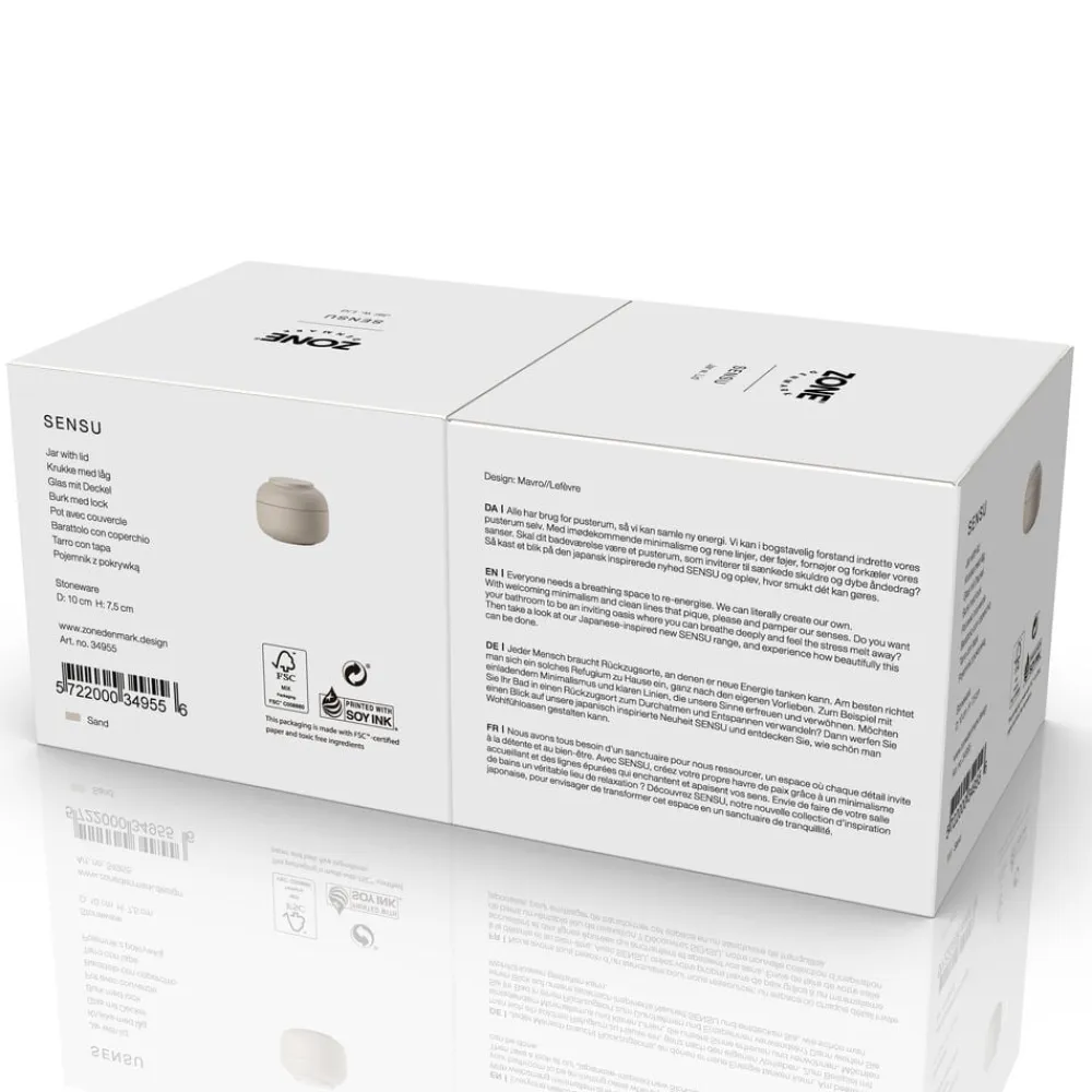 SENSU-krukkerne med låg findes i to forskellige størrelser. Den smalle krukke kan fx bruges til vatpinde eller tandstikkere. Låget til denne passer perfekt som fyrfadsstage, hvis du vender det om. Den brede krukke er mere rummelig og egner sig godt til fx hårpynt, makeup-favoritter eller smykker og ure.