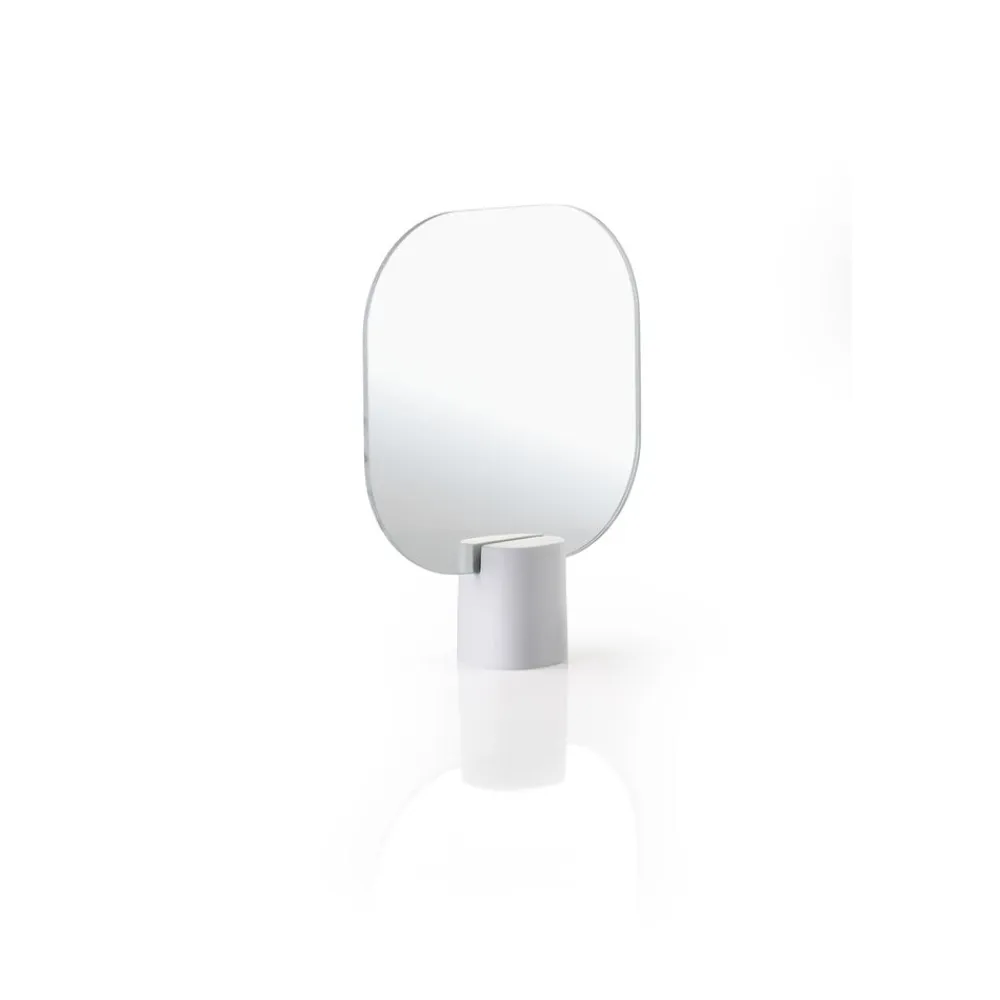Bordspejlet i hærdet glas med betonfod har et organisk og enkelt udtryk. Det stjæler ikke rummet, men glider naturligt ind i indretningen på både badeværelse, soveværelse og entrehylde. Beton er et populært materiale, da det passer godt sammen med naturmaterialer som træ, keramik og sten. Desuden har beton den fordel, at det bliver brændt ved lavere temperatur end keramik, så man sparer en smule på energien under produktionen. Designteamet Mavro//Lefèvre står bag denne stilsikre udvidelse af Time-universet.