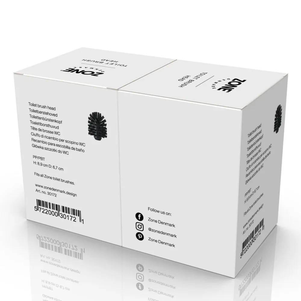 Toiletbørstehoved i ny udgave med kerne af PP og hår af PBT. Dette toiletbørstehoved passer til alle Zone Denmarks badserier, Ume, Nova, Rim, Time, Solo, Karma og Sensu.