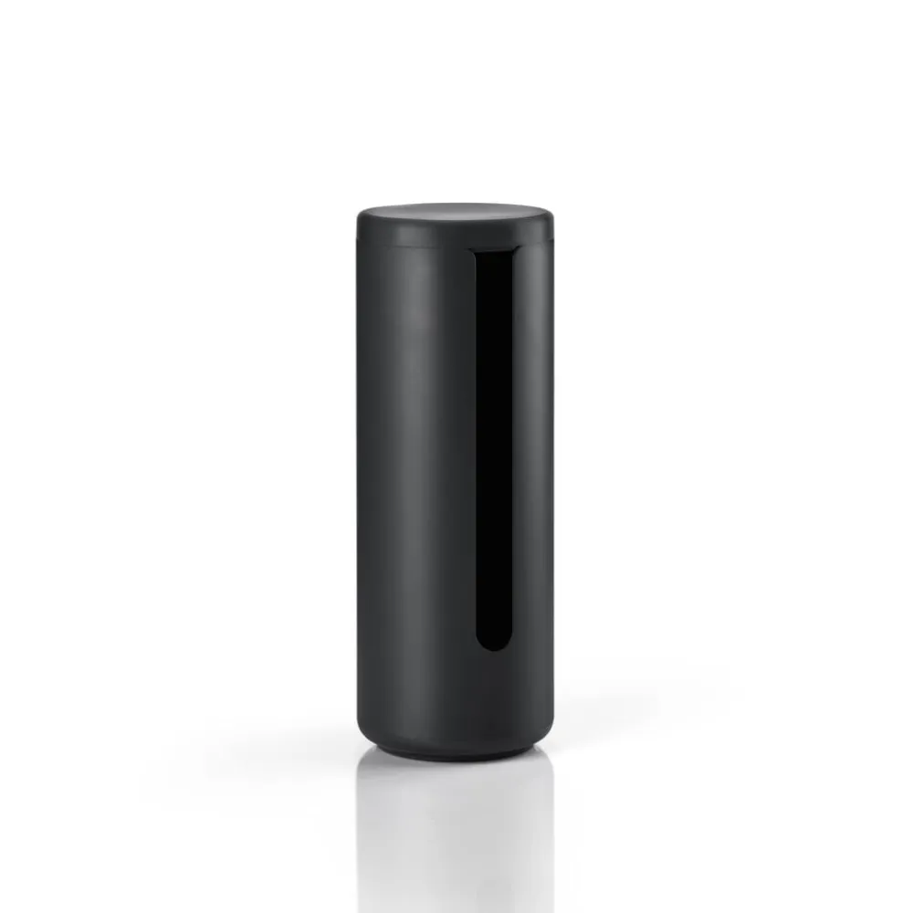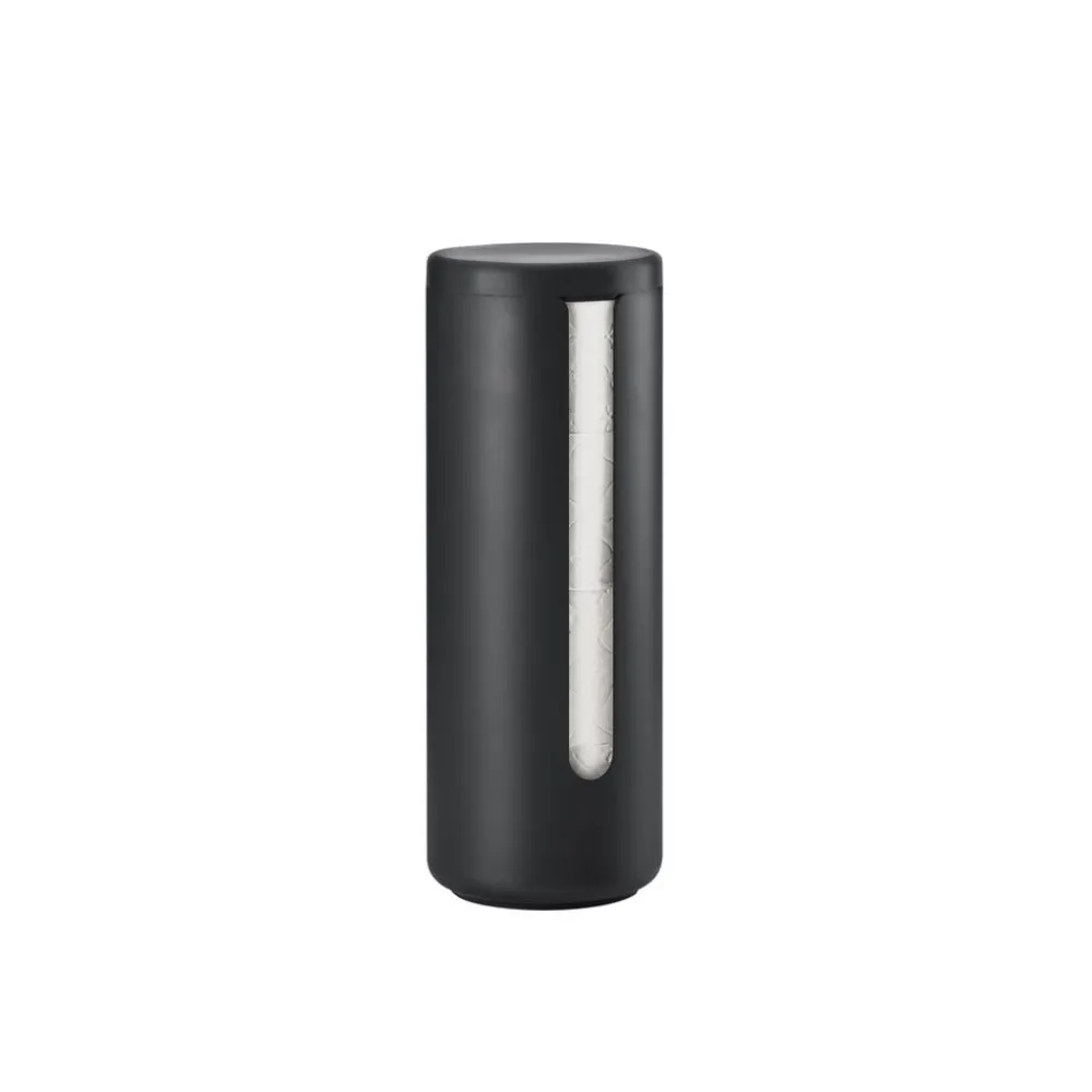 Den cylinderformede toiletrulleholder har plads til tre ruller, og du kan placere den, hvor du vil. Takket være tyngden i bunden står det lille dekorative tårn stabilt på gulvet. Alt er udført i pulverlakeret aluminium, så det er let at støve af og kan klare livet i det til tider fugtige miljø som et badeværelse kan være. Du fylder nemt nye ruller i ved at løfte låget af.