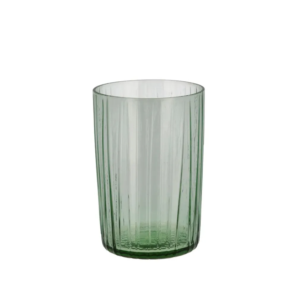 De flotte vandglas i gennemfarvet glas har det samme fine, riflede look som Kusintha-seriens vandflasker. Glassene fås i grøn, amber, pink, blå og en helt klar udgave. Når du køber fra Kusintha-kollektionen, støtter du samtidig udsatte børn i verdens fattigste områder.