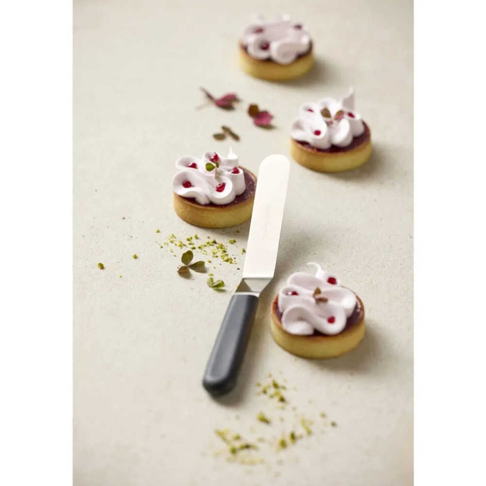Paletkniv forsynet med et knæk, så den er lettere at anvende i fx pande eller bradepande. Bruges til at smøre cremer, chokolade o. lign. ud. Anvendes også til fx at vende pandekager.
