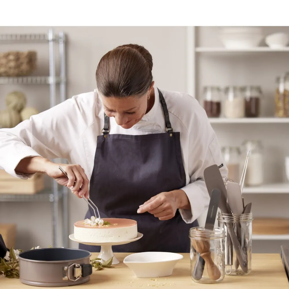 Springform i ekstra kraftigt kvalitetsstål med en bundtykkelse på 1 mm og en praktisk non-stick-belægning, som får de hjemmebagte lækkerier til at slippe formen lettere. Designet er elegant med en smuk latte farve på udvendig side. Springformen er perfekt til fx cheesecake, chokoladekage, gulerodskage samt lagkage- eller dessertbunde. Bør vaskes før brug første gang. Springformen kan tåle temperaturer op til max 230 °C.