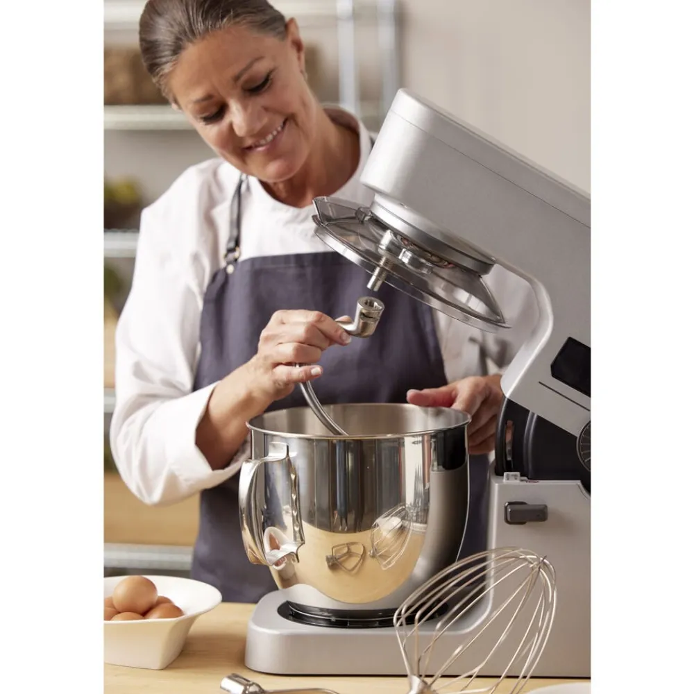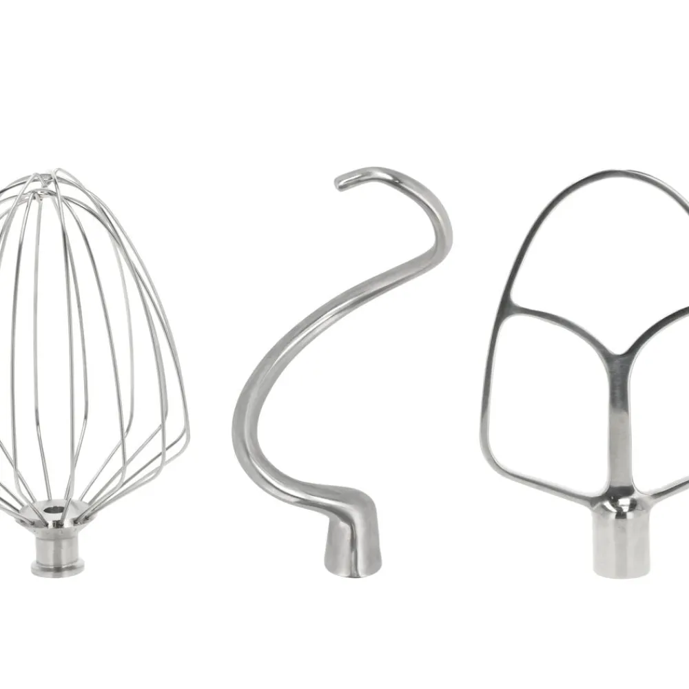 Tilbehørsdele: Et piskeris som pisker æggehvider, kagecreme eller en luftig flødeskum. Dejkrogen gør det nemt at ælte dej, uanset om det er til sunde boller, pizzadej eller anden smidig dej. K-spaden gør det nemt at røre kagedej eller frikadellefars.