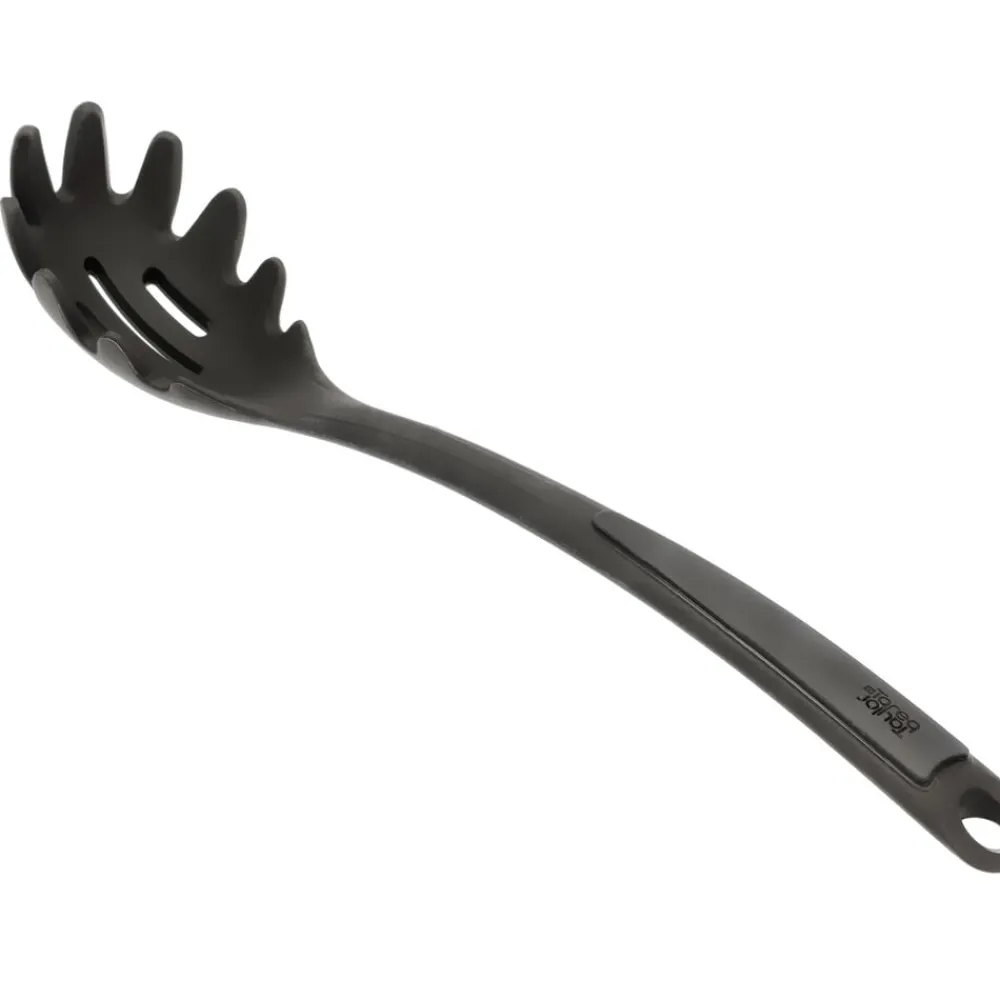 Gode resultater i køkkenet starter med godt køkkenudstyr. Med denne enkle spaghettiske er du sikret høj kvalitet og brugervenligt design. Spaghettiskeen er fremstillet af metal med en silikonebelægning, der giver et godt greb, når du skal have fat i både pastaskruer og spaghetti. Skeen har praktiske huller i midten, så overskydende vand nemt hældes fra. Velegnet til opvaskemaskine. Tåler temperaturer op til 230 grader C.