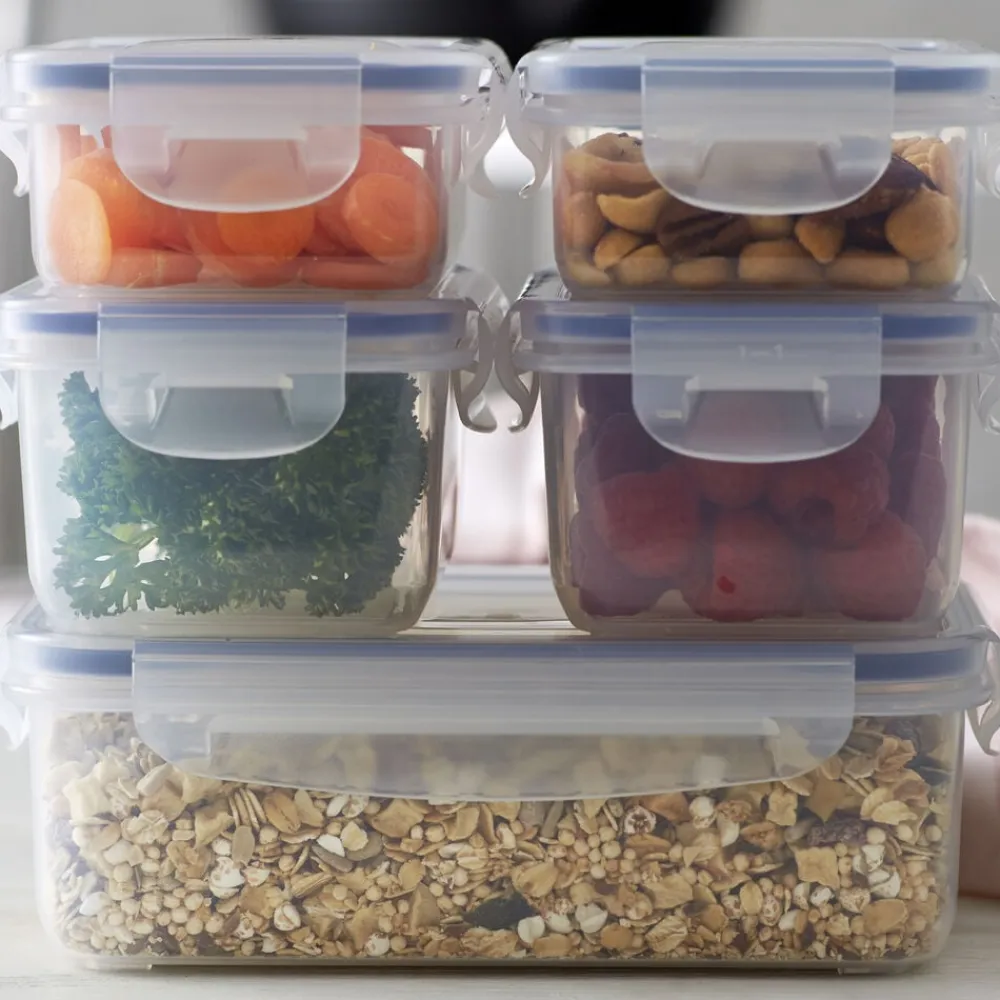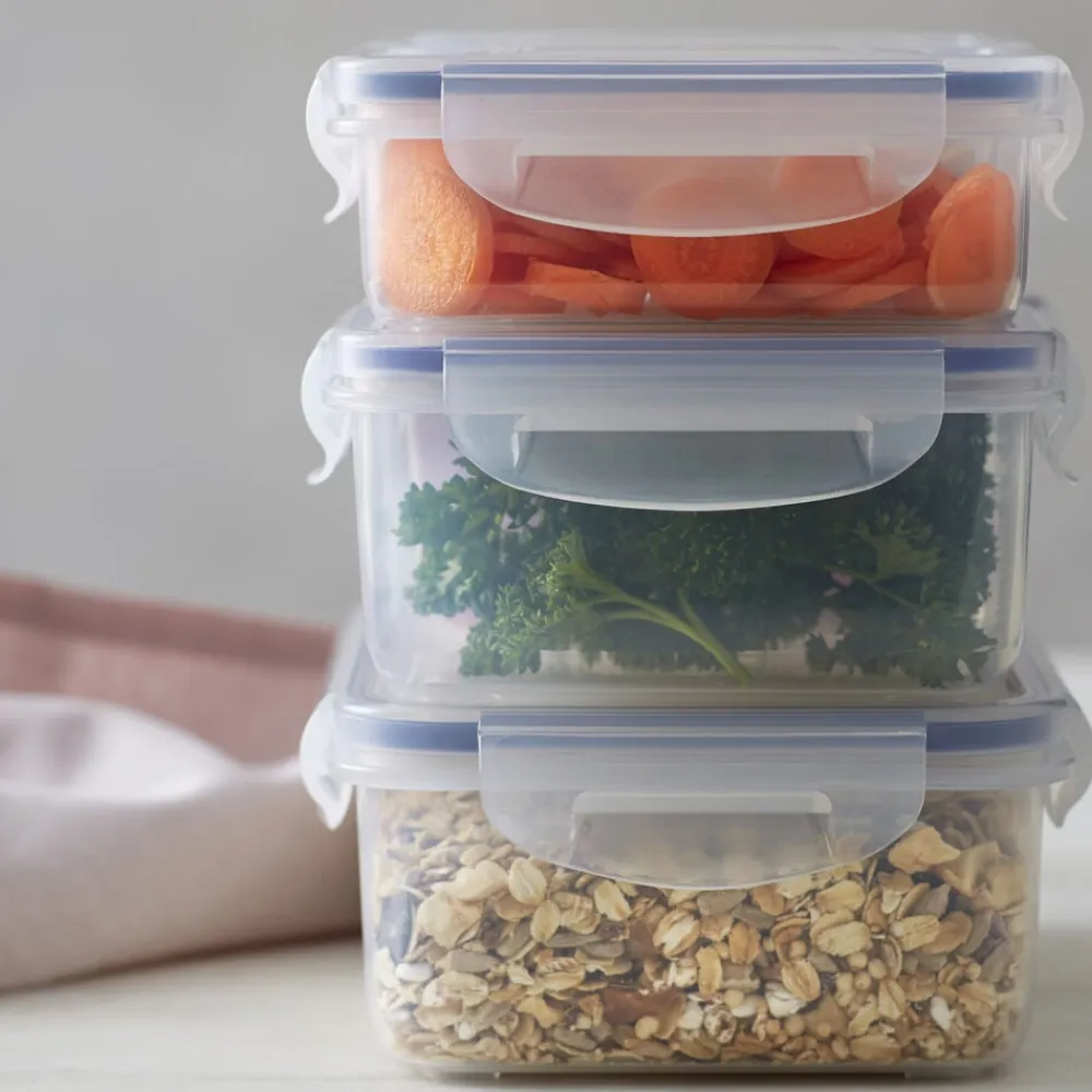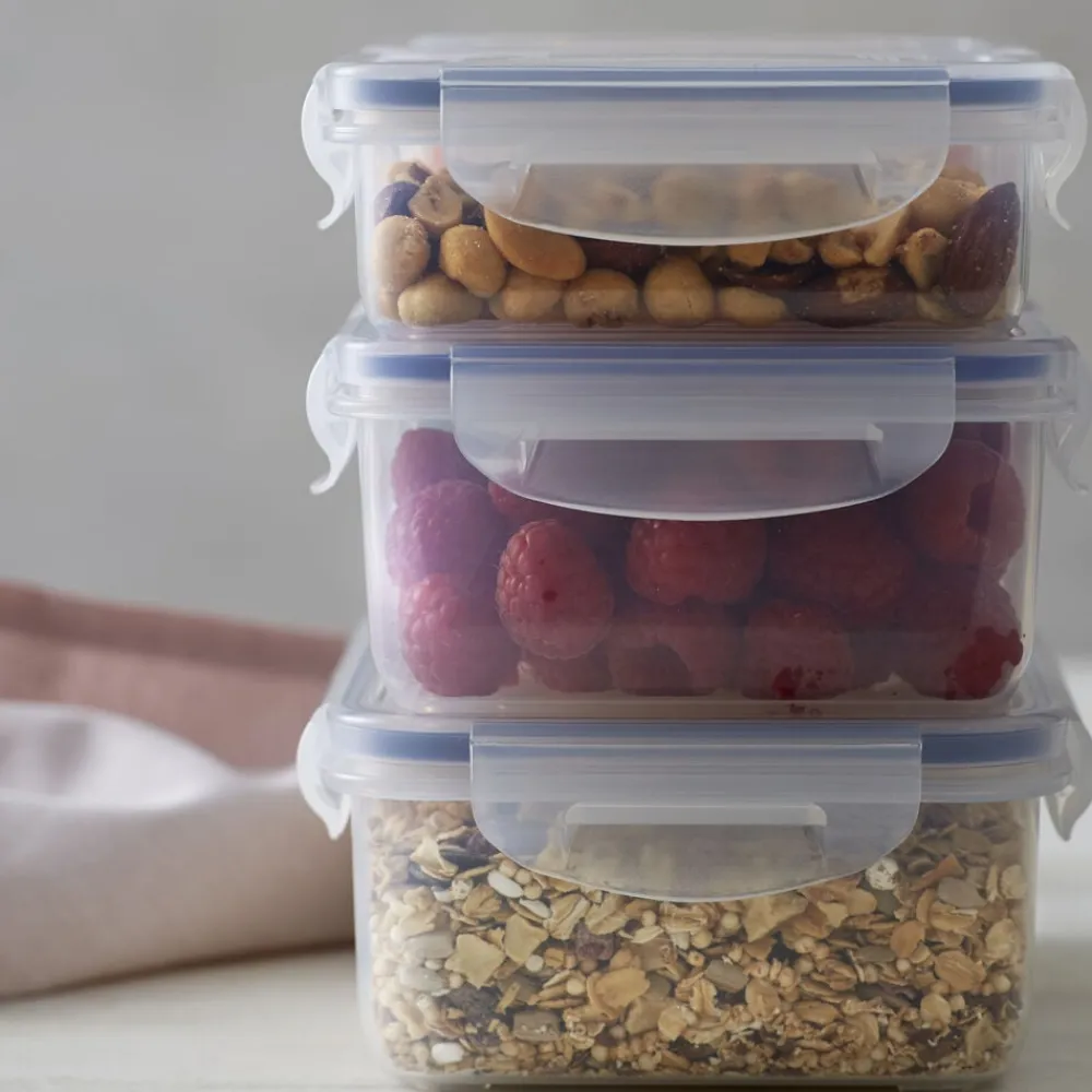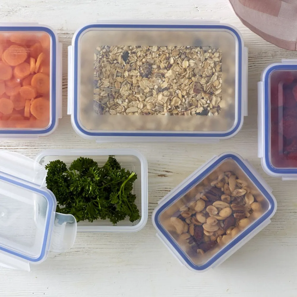 Lufttætte opbevaringsbokse med 4 klips og gummikant.