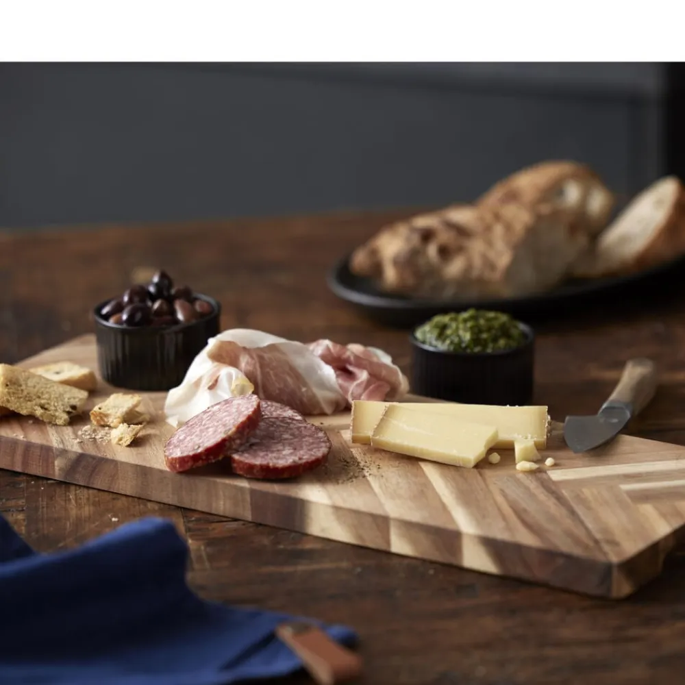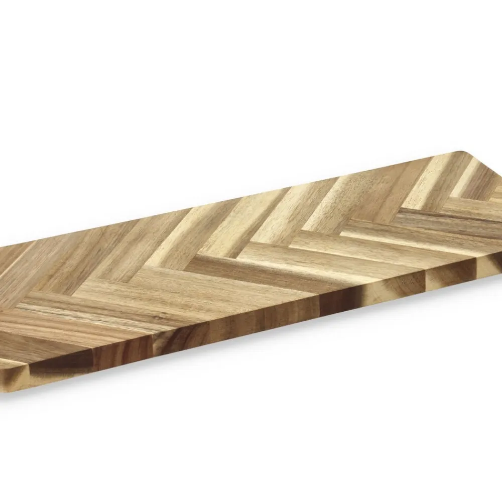 Stort serveringsbræt af akacietræ i smukt sildebensmønster. Brug det flotte serveringsbræt til servering af pizza, pålæg, bruschetta og andre antipasti-retter, ost eller andre retter, der skal præsenteres flot. 45 x 16,5 cm.