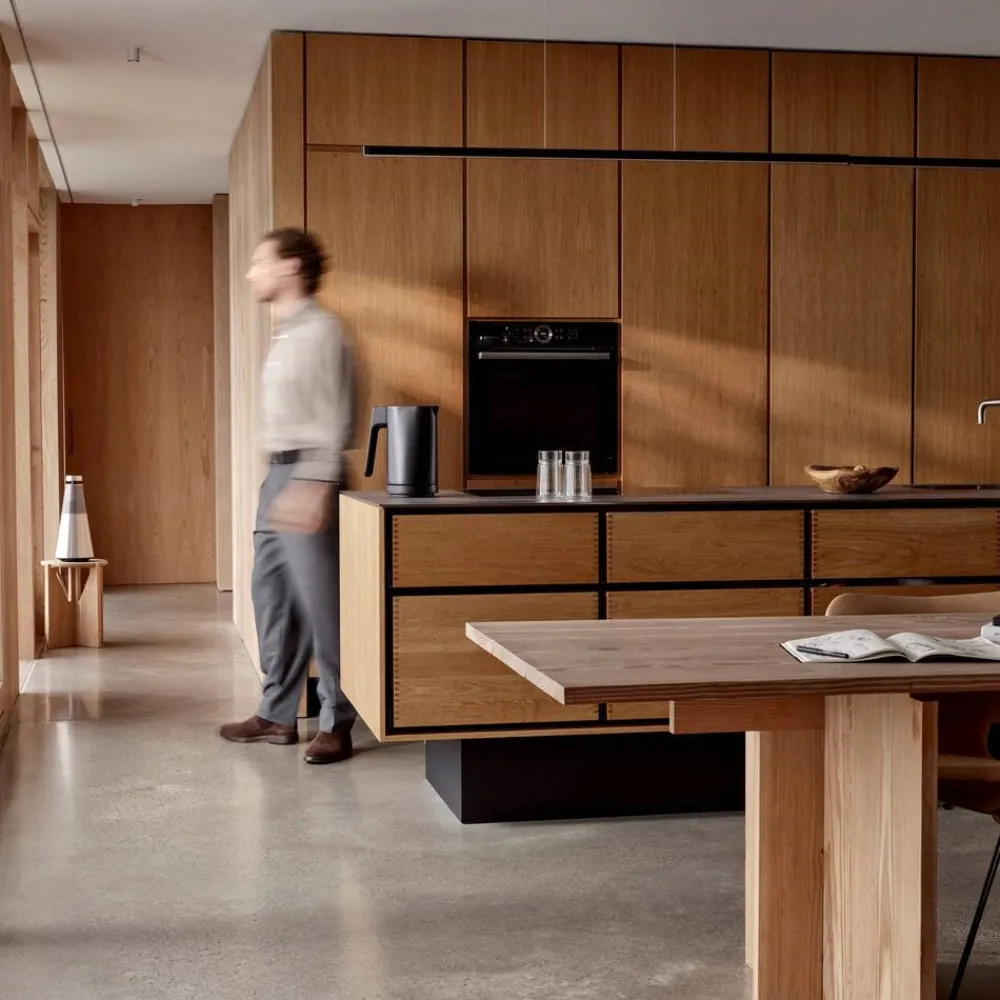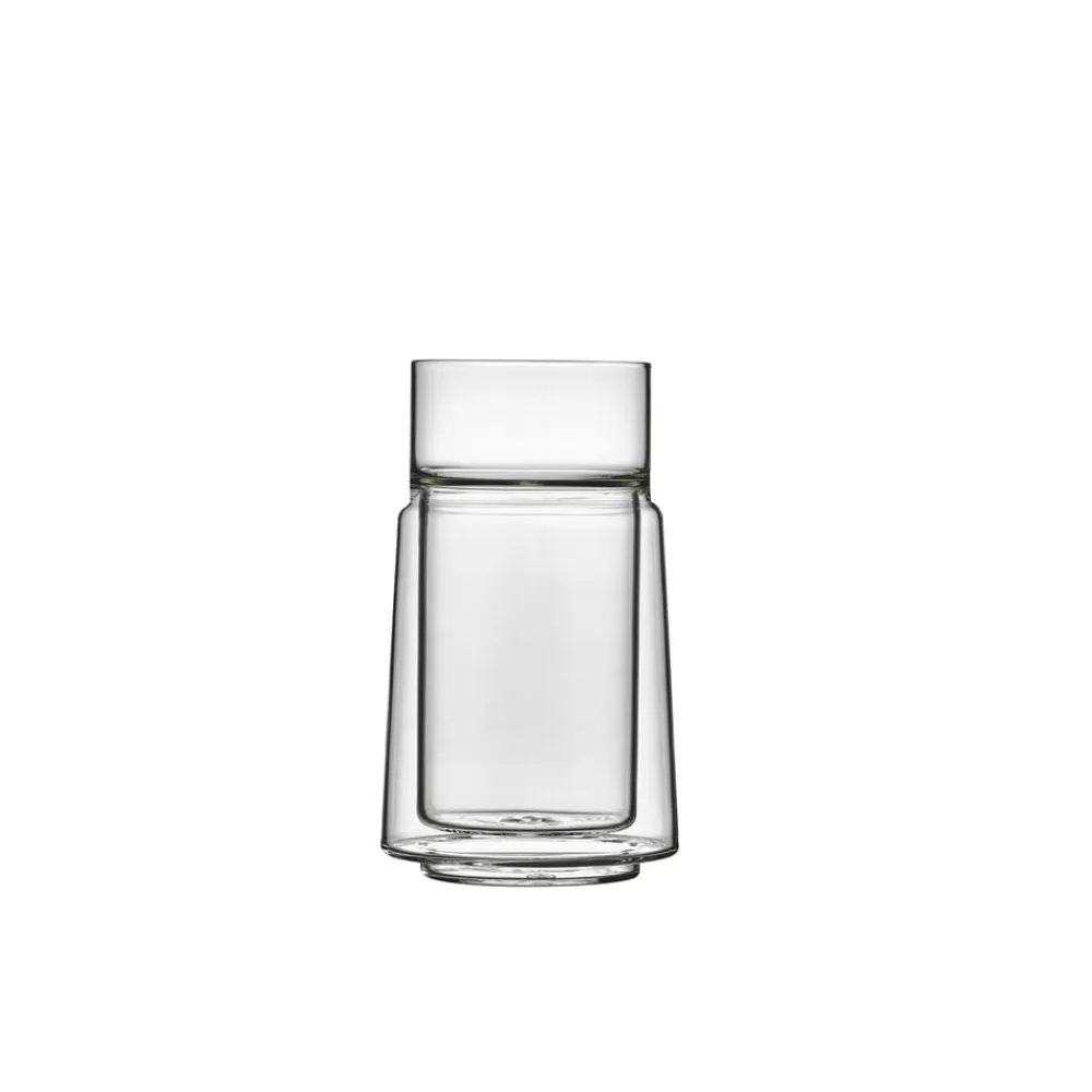 Jacob Jensens elegante kaffeglas er en sublim kombination af et dobbeltvægget kar med en enkeltvægget kant. Den tynde kant er behagelig at drikke af, og termoeffekten i beholderen holder kaffen perfekt varm. Glassene findes i tre størrelser, 33 cl til latte, 21 cl til americano og 7 cl til espresso.