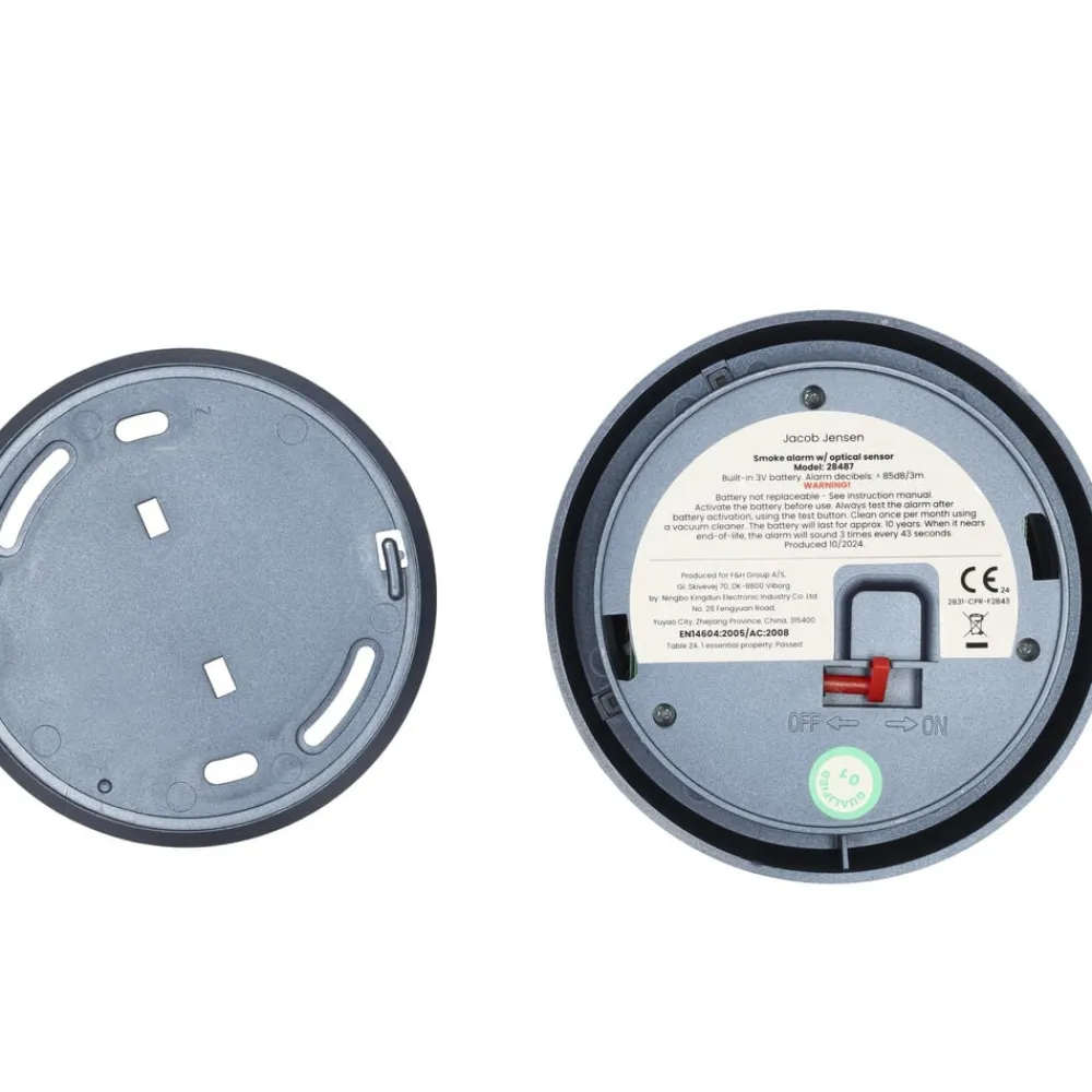 Jacob Jensens optiske røgalarm er skabt til at skabe tryghed, så den samtidig tilføjer et strejf af elegance til dit hjem i form af det innovative design. En konstant pulserende lysstråle detekterer røg. Hvis lysstrålen brydes af røgpartikler, vil alarmen lyde. Integreret batteri med en levetid på 10 år. Denne røgalarm er en uafhængig enhed og kan ikke serieforbindes.
