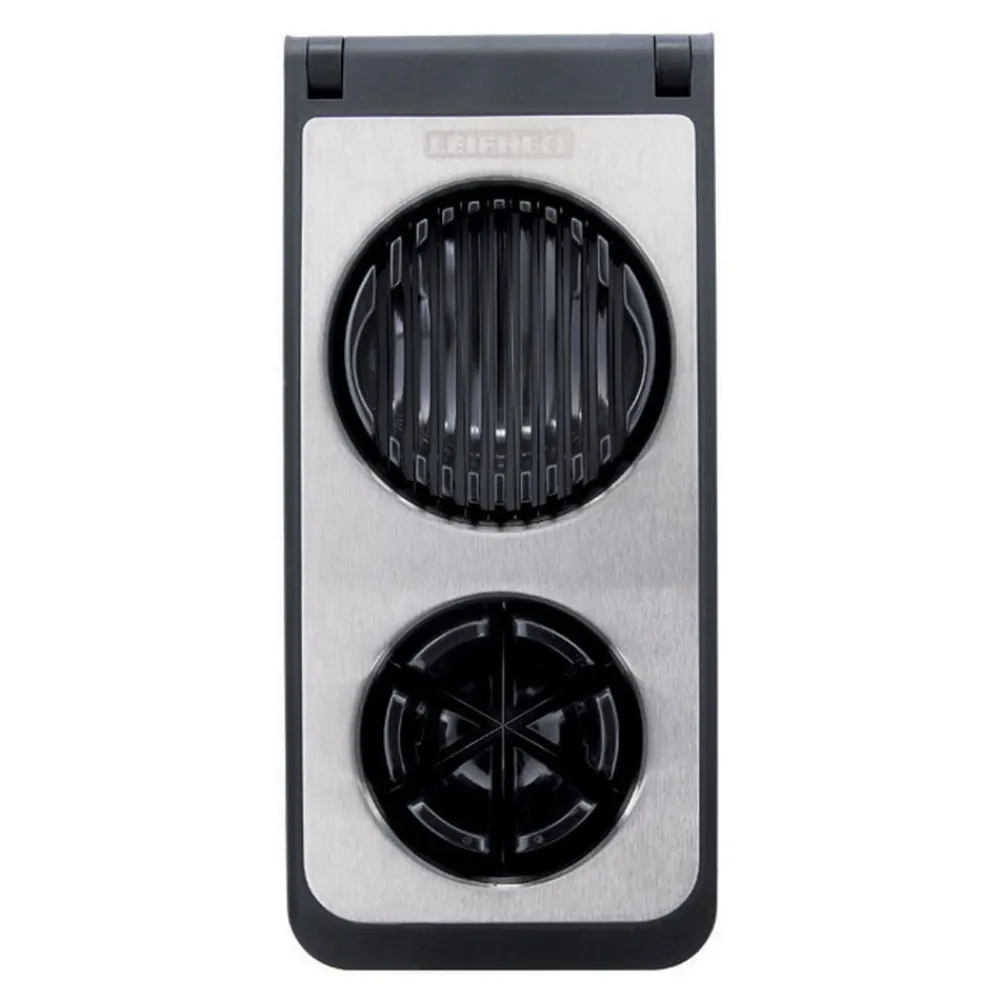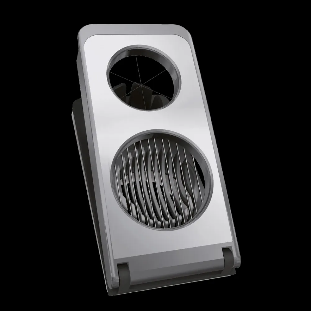 Kan dele æggene i ovale og runde skiver samt både. Let at rengøre, med rustfrit stål skære tråd. Også egnet til champignon og kogte kartofler.