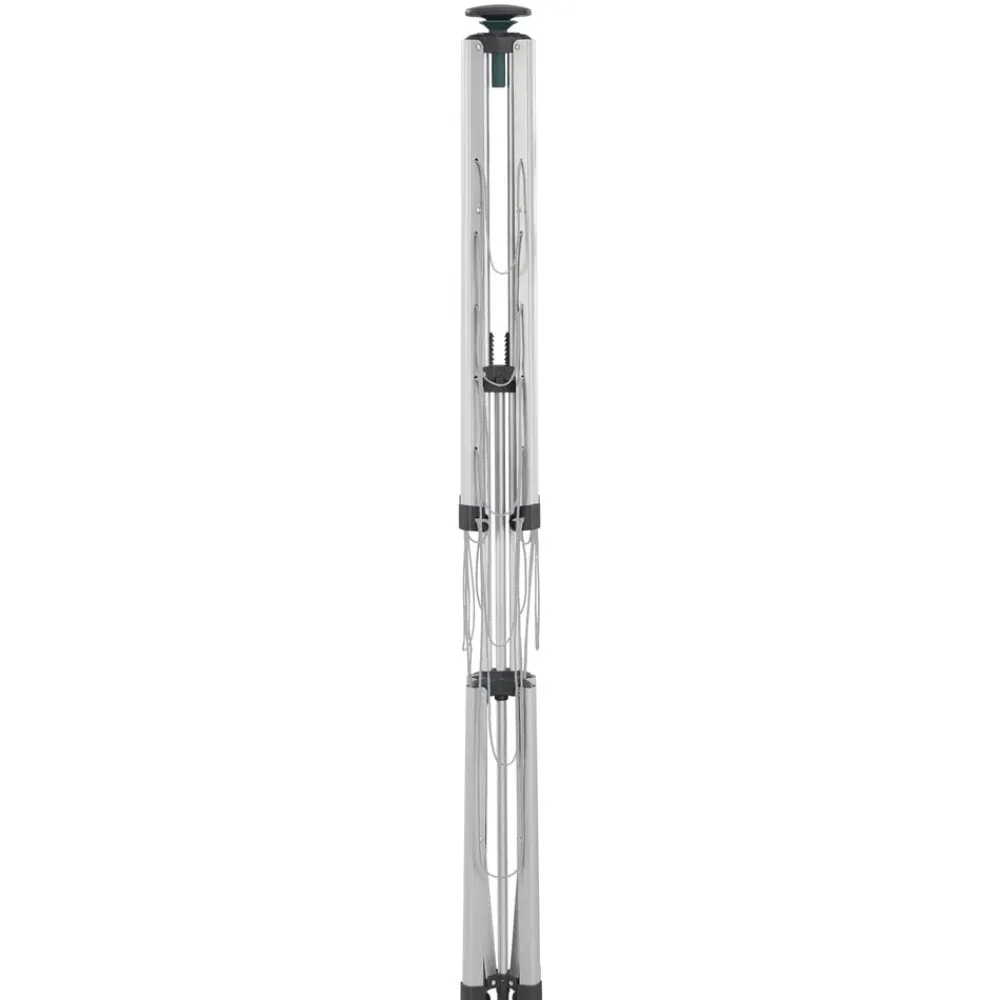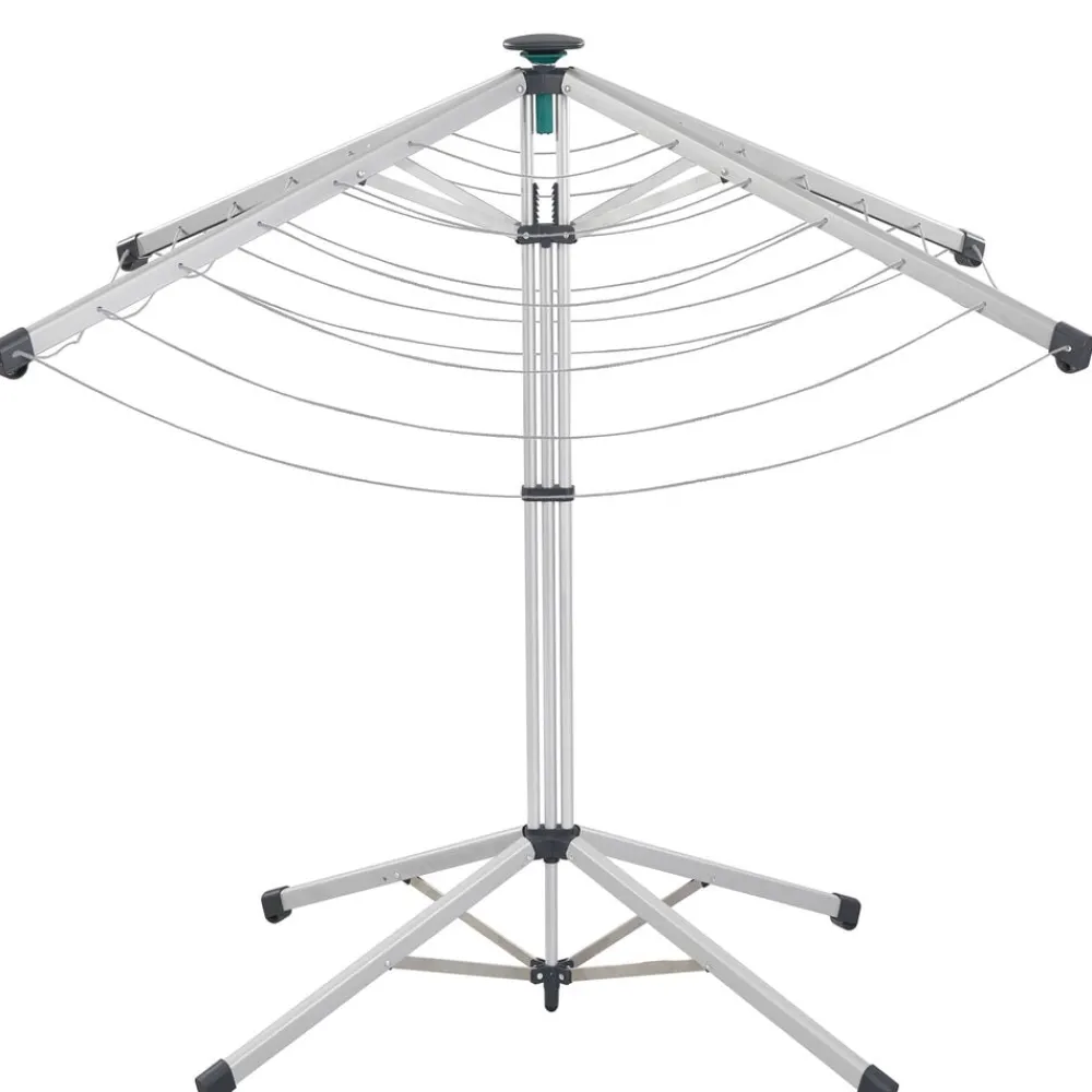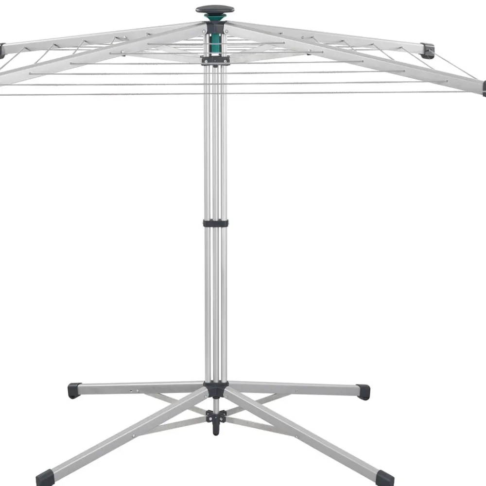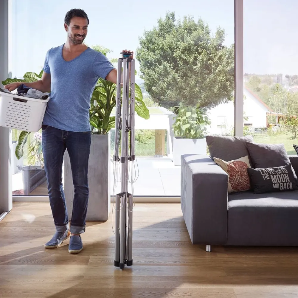 Stativet vejer kun ca. 3,5 kg og er let at transportere. Overtræk medfølger, så stativet nemt kan beskyttes mod snavs – rene snore, rent vasketøj. Stativet har 14 meter tørreplads, svarende til en maskinvask. Den yderste række snore har en bredde på 110 cm og dermed god plads til brede stykker vasketøj. Sammenslået højde 147 cm, opslået makshøjde 110 cm. Tørrearealet måler 83 x 116 cm, når stativet er slået ud.
