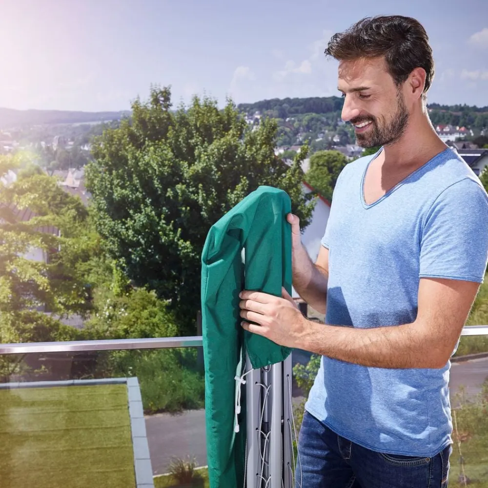 Handy og kompakt paraplytørrestativ på fod. Stativet kan slås op og lukkes sammen med én hånd blot ved at aktivere en enkelt knap, og det fylder kun lidt ved opbevaring. Velegnet til eksempelvis campingferien, balkonen og mindre boliger.