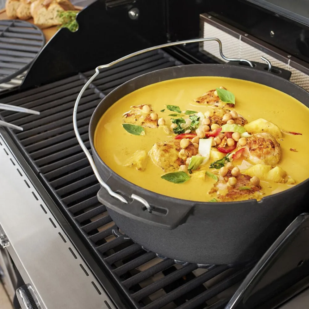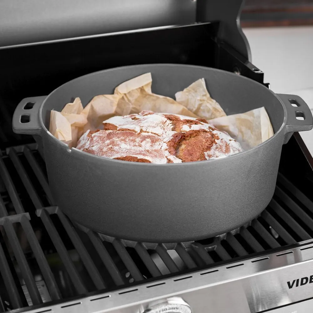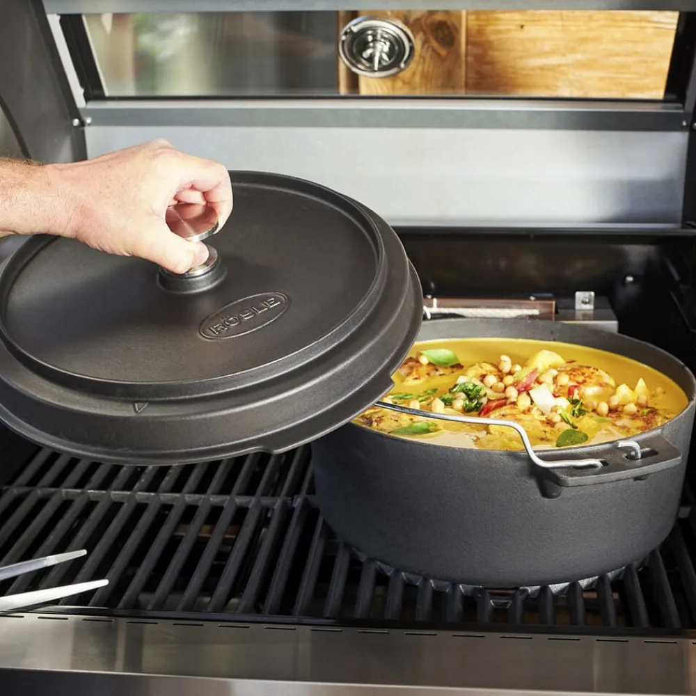 Gryde i støbejern, der passer til Rösles Vario+ grillsystem. Gryden anvendes til al slags madlavning, fx stegning og bagning. Den kan placeres direkte på ilden, på kogepladen eller på grillristen. 8,5 liter, diameter 35 cm.