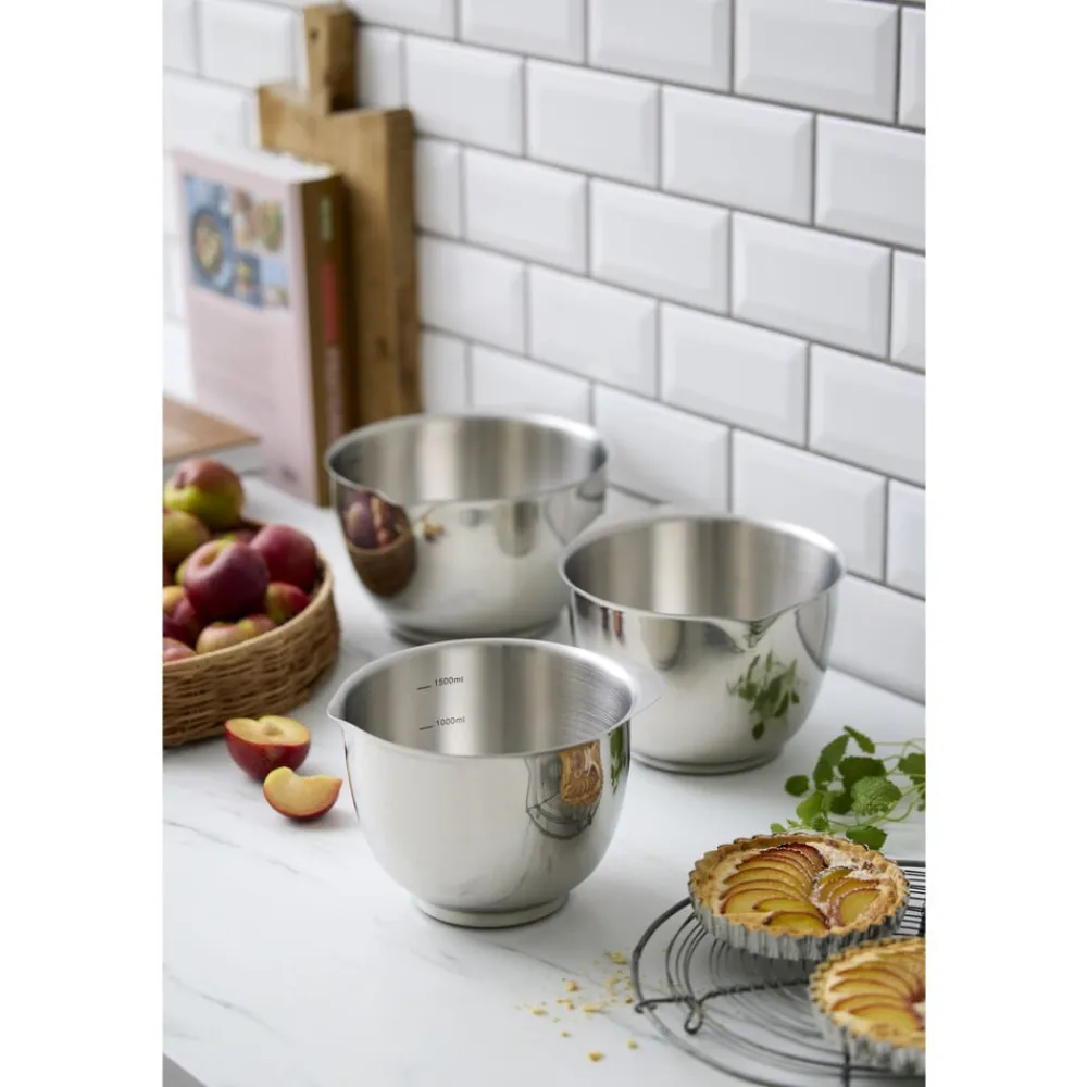 Flot og eksklusivt sæt i stål af den kendte og elskede Margrethe-skål – 1,5 + 2 + 3 liter. Skålen er produceret i 18/8 stål og har satin-finish indvendig og blank finish udvendig. Kan vaskes i opvaskemaskine og bruges i fryser, men ikke i mikroovn. 5 års garanti.