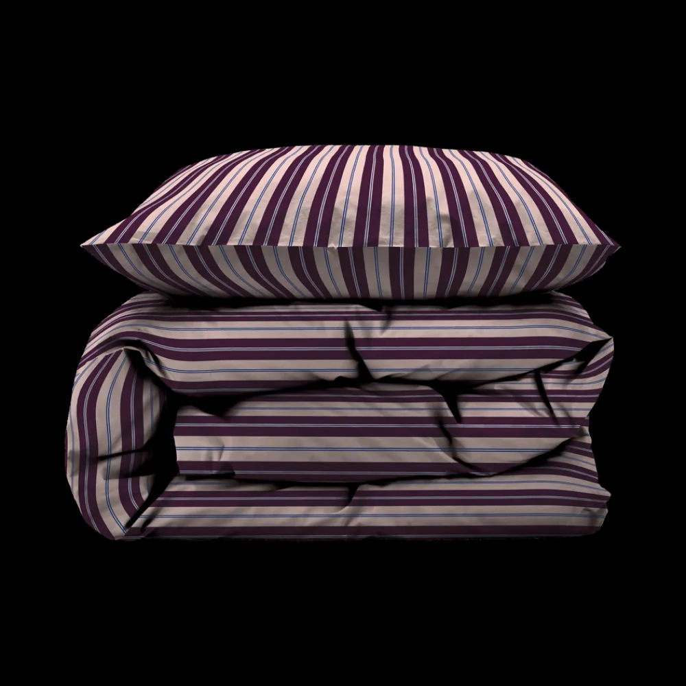 Flow tilfører soveværelset elegance og rytme med sit fine grafiske stribemønster. Både layout og farvekombinationer er identiske på for- og bagside af sengesættet, hvilket giver et harmonisk og afbalanceret udtryk. Fremstillet i 100 % bomuld i en åndbar lærredsvævning.