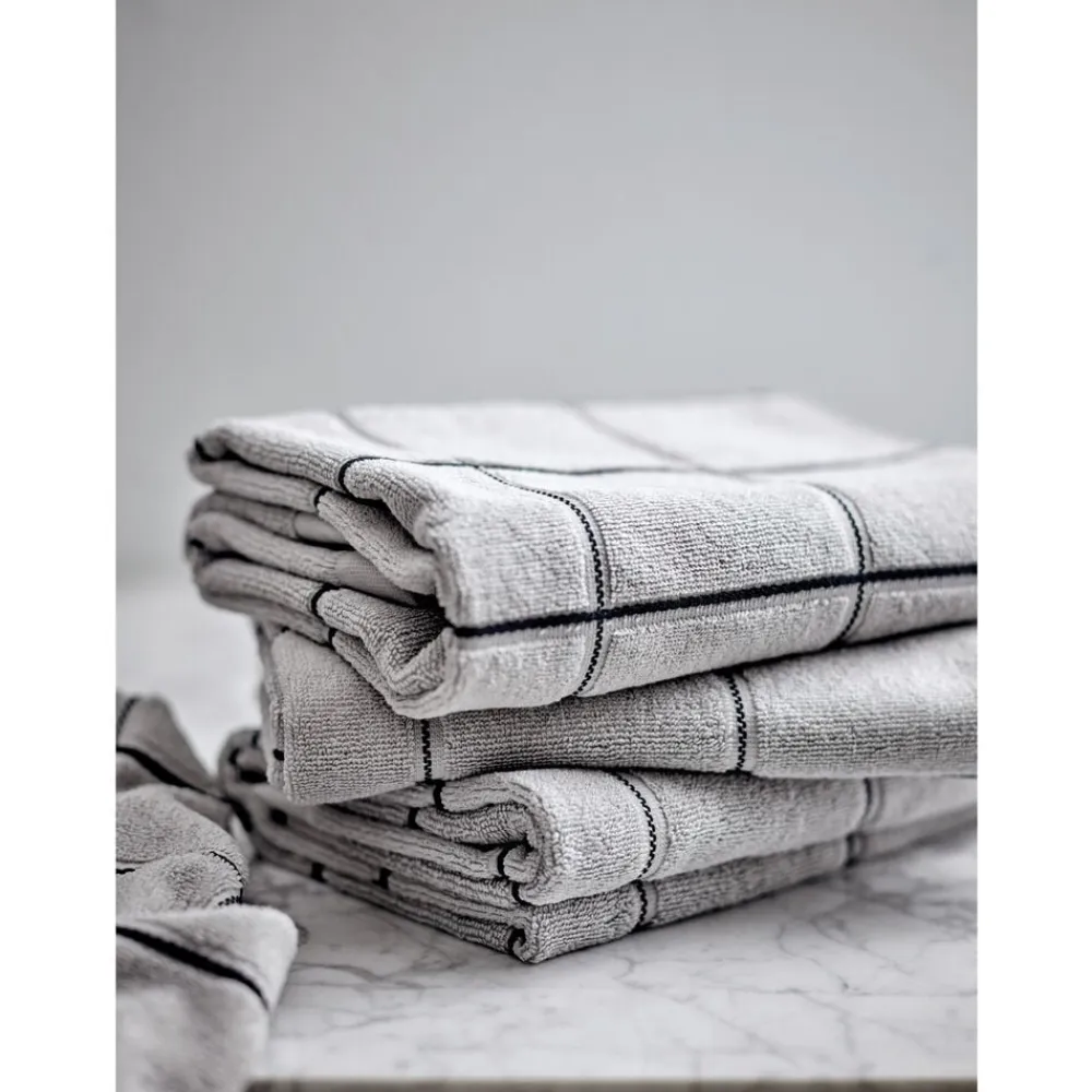 Designet med de minimalistiske tern fås i en række fantastiske farvekombinationer og giver dit badeværelse et touch af moderne elegance. Ud over det æstetiske aspekt giver den lækre, økologiske bomuld din hud den blideste berøring ved dine daglige rutiner.