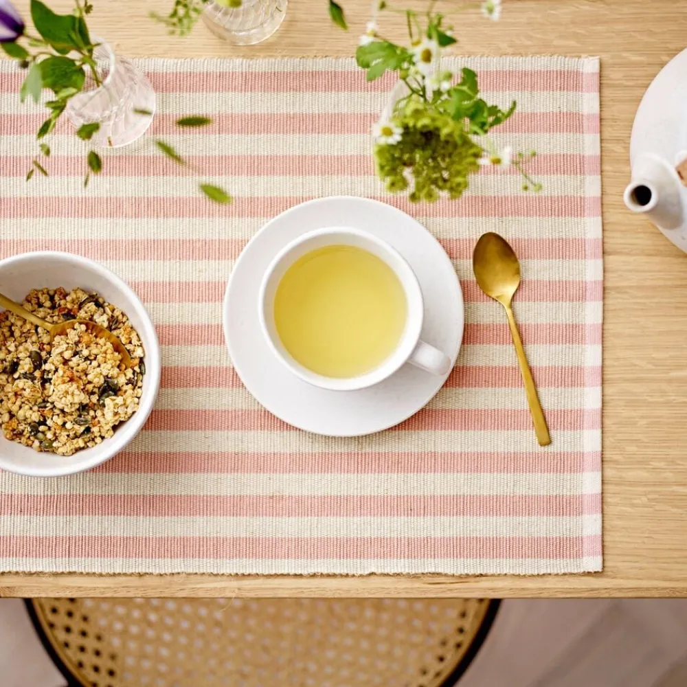 Disse klassiske striber med brede og ensartede linjer udgør den perfekte baggrund for hverdagslivet. Dækkeservietten er lavet af bomuld og jutefibre, hvilket giver den et charmerende og let rustikt udseende. Dækkeservietten fås i en række flotte farver, som giver indretningen et optimistisk løft.
