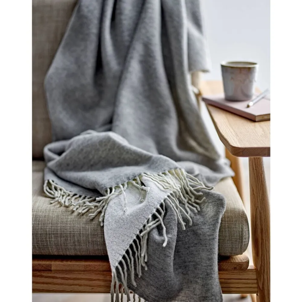 Tranquil-plaiden er fremstillet af en delikat blanding med 70 % uld (60 % genanvendt uld/10 % ny uld) og giver både varme og miljøbevidst luksus. Tag godt imod denne lækre uldblanding og skab en hyggelig atmosfære i dit hjem.