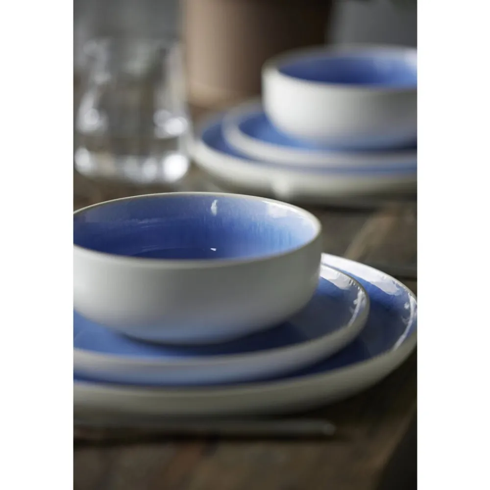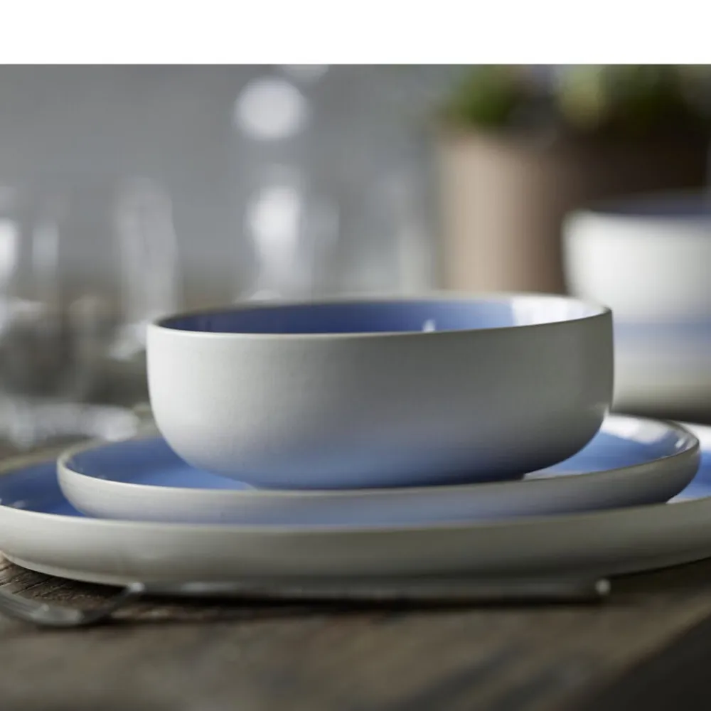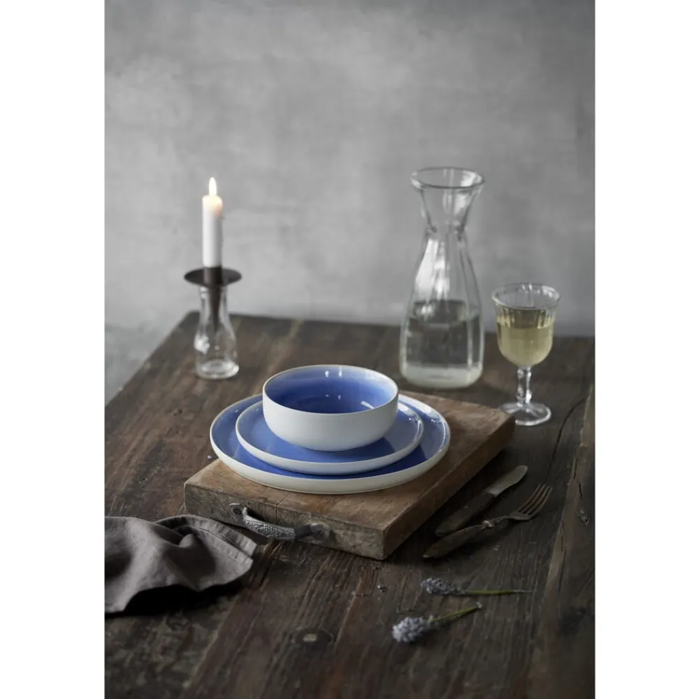 Grundfarven er mat hvid, og produktets inderside er glaseret med den smukke blå farve River, her i den blanke variant. Blå er himlens og havets farve og en markant og iøjnefaldende trendfarve. Blå er yndlingsfarven hos mange, den er klassisk og kølig og passer perfekt ind i nordisk boligindretning. River går godt sammen med organiske materialer som lyst træ og kan kombineres med et meget bredt farvespekter, lige fra rødbrune terrakottafarver over lyse pasteller til andre stærke farver. River kan have mange forskellige udtryk alt efter, hvad den sættes sammen med.