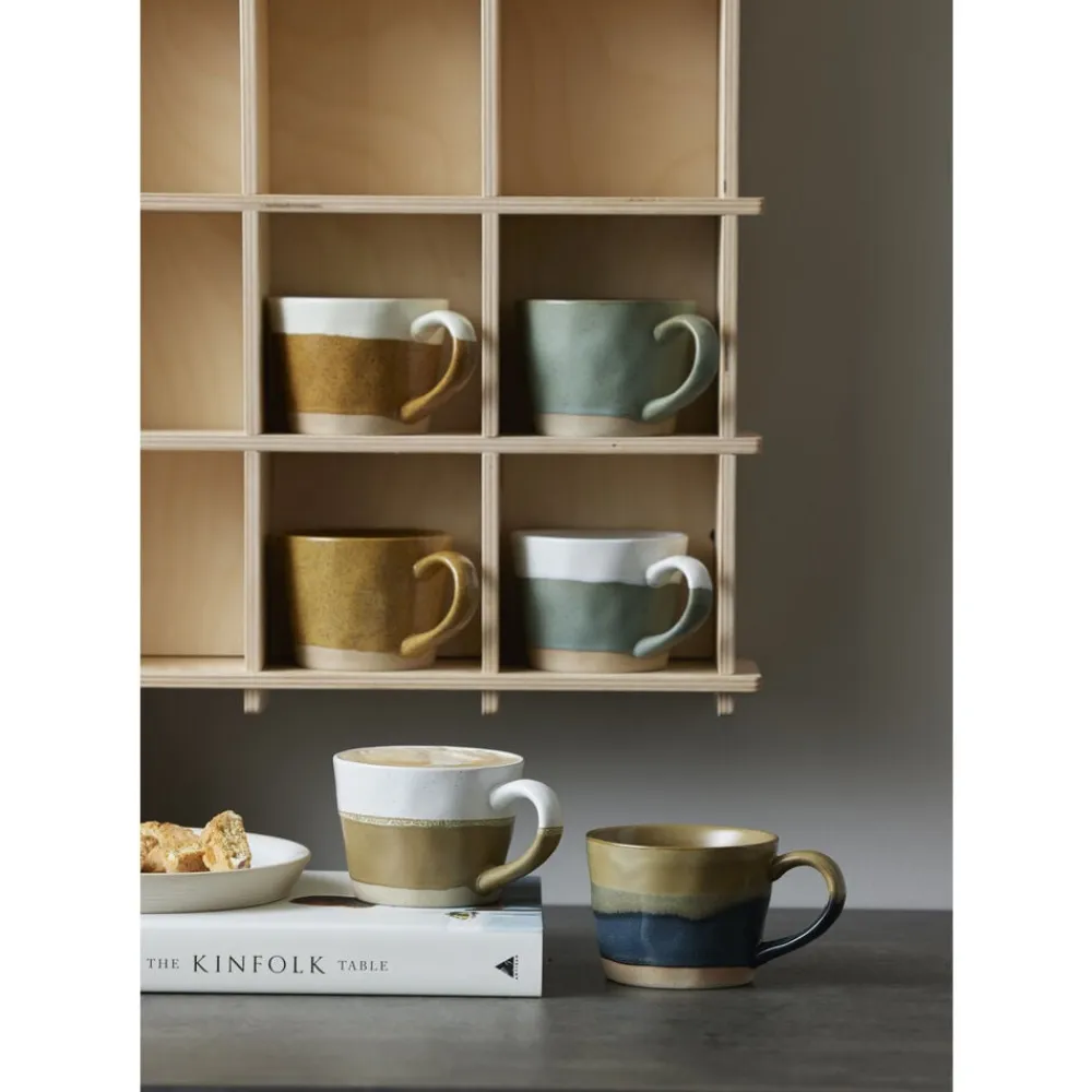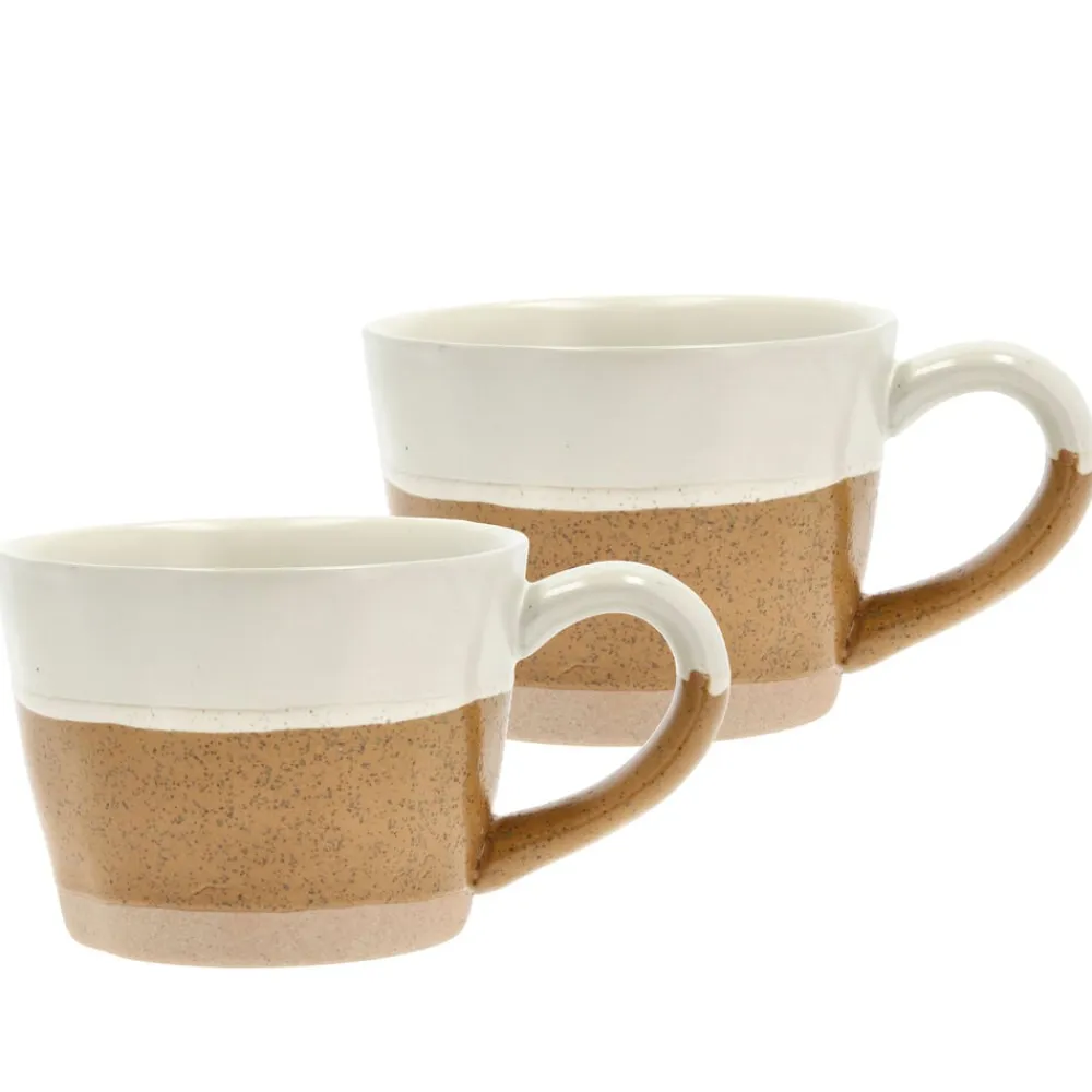 2 porcelænskrus med hank, 30 cl, med en smuk, reaktiv glasur. De har et fantastisk udseende med en unik overflade, da hvert enkelt produkt er hånddekoreret, og derfor kan farve og overflade variere. D 14 cm, H 7,3 cm.