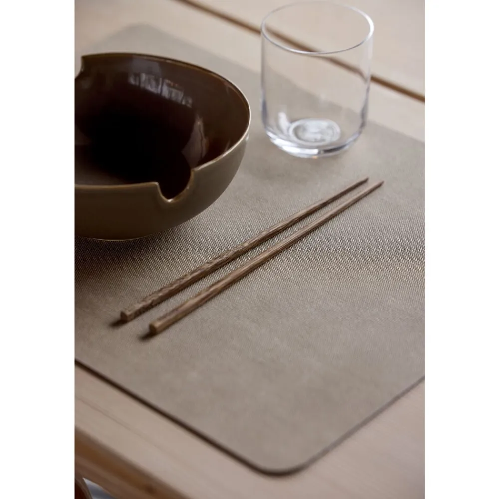 Shoku-dækkeservietten har en tekstur som kraftigt tekstil og tilføjer borddækningen en organisk stoflighed. Farverne spejler Shoku-seriens toner med en ekstra raffineret detalje, idet dækkeservietten har en smuk kontrast med en lys og en mørk side. De vendbare dækkeservietter er praktiske og lette at rengøre med en klud.