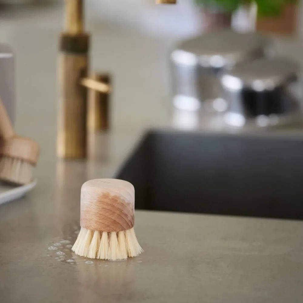 Gryder kan være genstridige, og det kan kræve sin børste at få dem helt rene. Ikke desto mindre er her en version, der på elegant vis tager kampen op – og vinder. Det runde hoved ligger perfekt i hånden, og sammen med de korte, stærke kaktushår bliver effekten høj. Ligesom seriens øvrige to børster er grydebørsten udført i bøg og behandlet med bivoks.