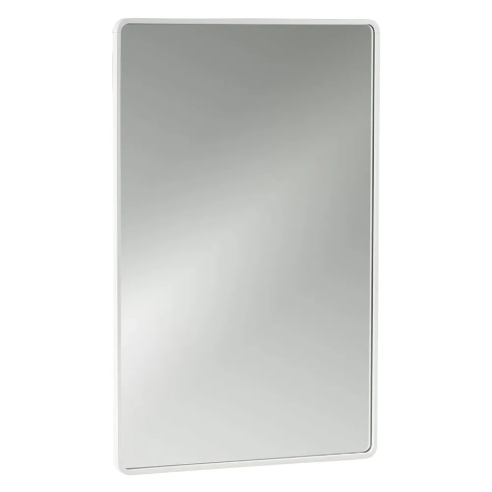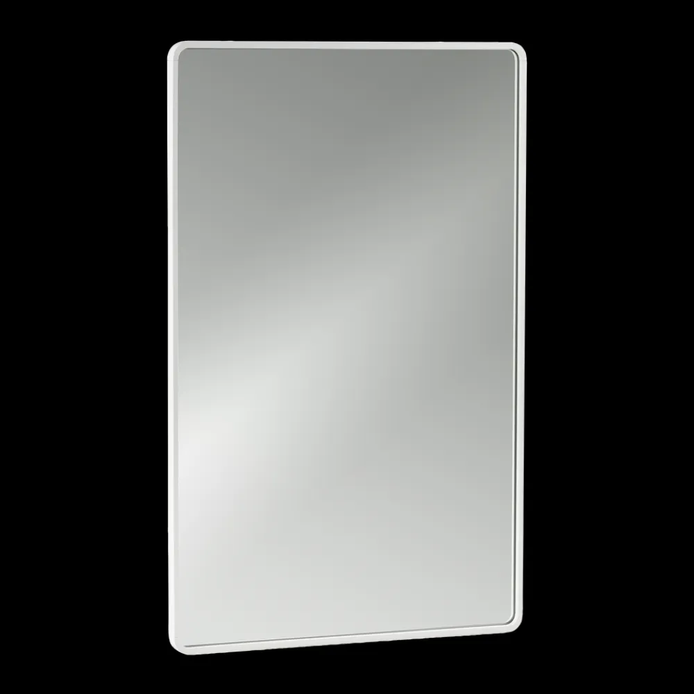 Slå stilen i badeværelset an med det flotte spejl. Der fås en matchende hylde, og spejl og hylde reflekterer hinanden i et enkelt formsprog og samme bredde, der skaber et roligt og ensartet udtryk – uanset om man foretrækker sættet i sort eller hvid. Spejlet måler 70 x 44 cm, mens hylden er 44 cm bred.