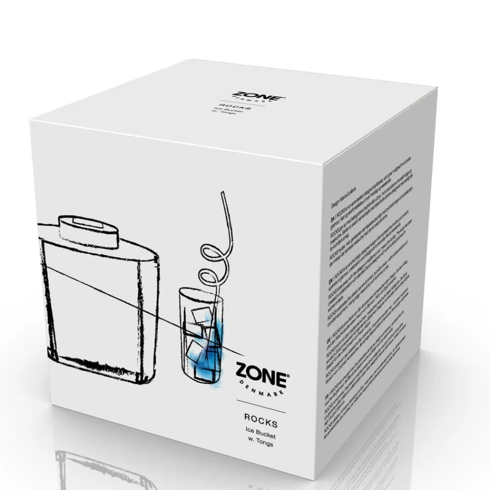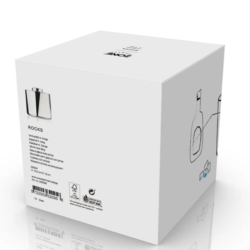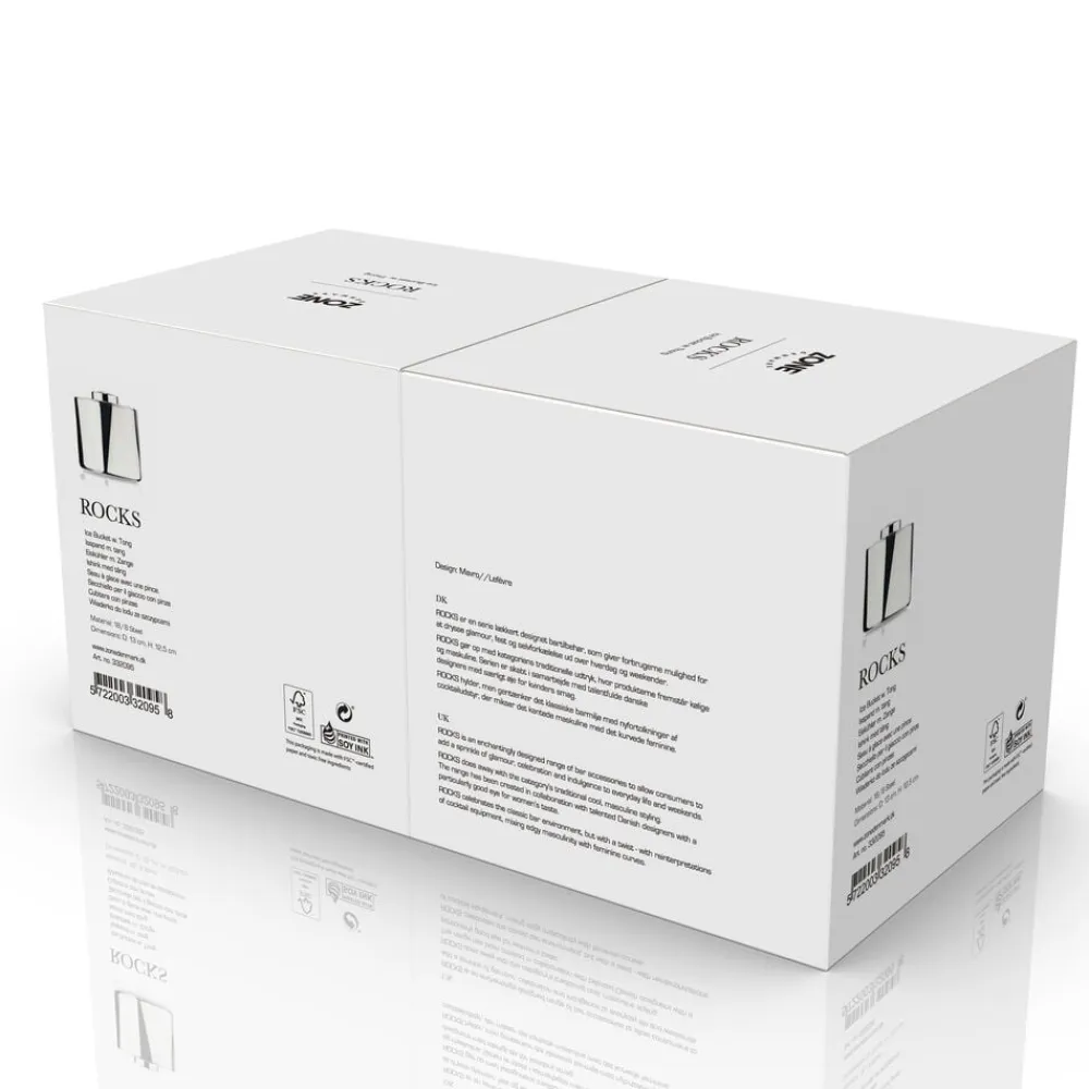 Den danske designduo Mavro//Lefèvre står bag den hyperelegante isspand i rustfrist stål. Som en smeltende isterning glider bundens let kvadratiske facon over i toppens cirkelform. Den afsluttes med et låg, som på genial vis gemmer på en istang. 1,0 l.