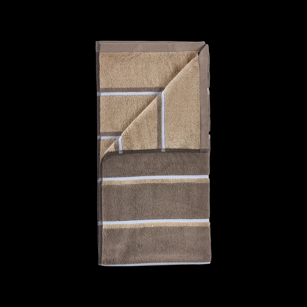 De retroinspirerede striber tilføjer et grafisk, urbant touch, og med en blød, kraftig kvalitet i garnfarvet 600 grams bomuld, føles håndklædet lige så lækkert, som det ser ud.