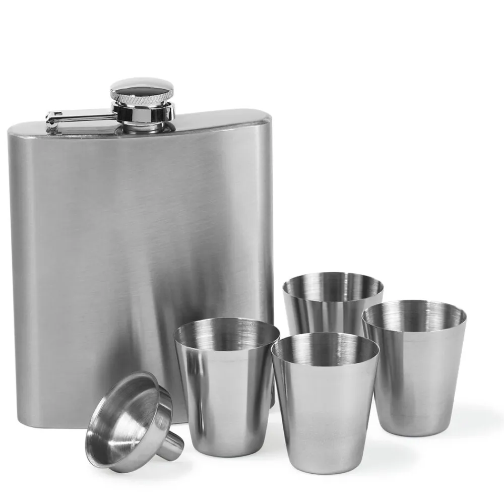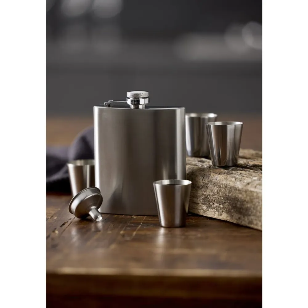 Funktionelt lommelærkesæt i 6 dele i 18/10 rustfrit stål med mat finish. Lommelærken passer perfekt til jakkens inderlomme på jagt- eller skovturen. Sættet indeholder lommelærke 200 ml, 4 drikkebægre 30 ml og praktisk tragt til påfyldning af flasken.