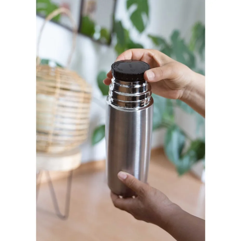 Praktisk Alfi IsoTherm Eco termoflaske, der er perfekt at tage med på farten. Rustfrit stål i høj kvalitet. Dobbeltvægget termoflaske med vakuum. Meget robust og holdbar over for slag og stød. Praktisk skruelåg med drikkekop. 100 % tæt. Holder varmt i 12 timer og koldt i 24 timer.