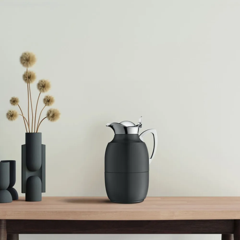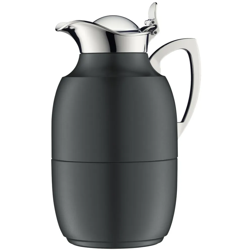 Alfi Juwel er en af verdens mest kendte termokander, og det oprindelige stilrene design kan dateres helt tilbage til 1918. Termokande i poleret stål i høj kvalitet. Dobbeltvægget AlfiDur-indsats i isolerende og hærdet vakuum-glas. Holder varmt i 12 timer, holder koldt i 24 timer. Unikt og praktisk hældesystem. Kan betjenes med én hånd. Ergonomisk, forkromet metalhåndtag.