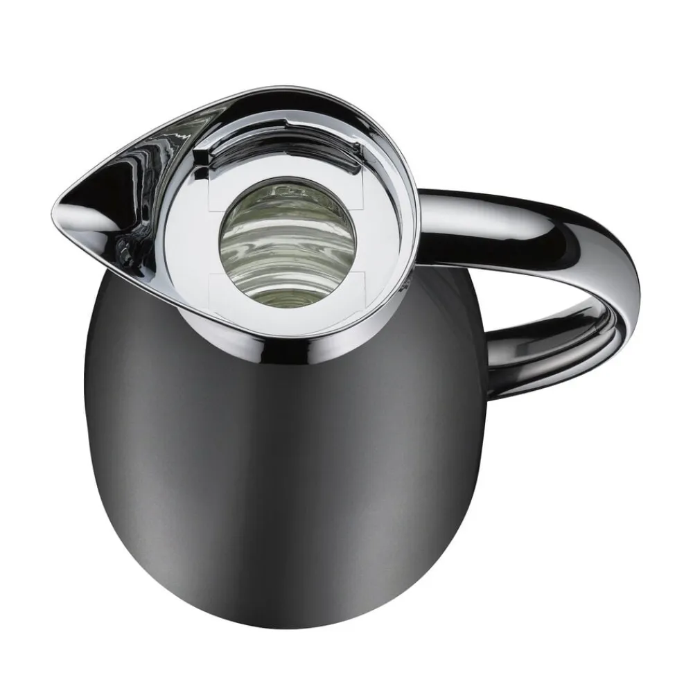 Alfi Signo matcher tidens trends med sit stilrene og minimalistiske design. Termokande i rustfrit stål. Dobbeltvægget AlfiDur-indsats i isolerende og hærdet vakuum-glas. Holder varmt i op til 12 timer og koldt i op til 24 timer. AromaSafe-princippet bevarer kaffens runde smag. Unikt og praktisk hældesystem. Kan betjenes med én hånd. Ergonomisk, forkromet metalhåndtag. Fri for BPA.