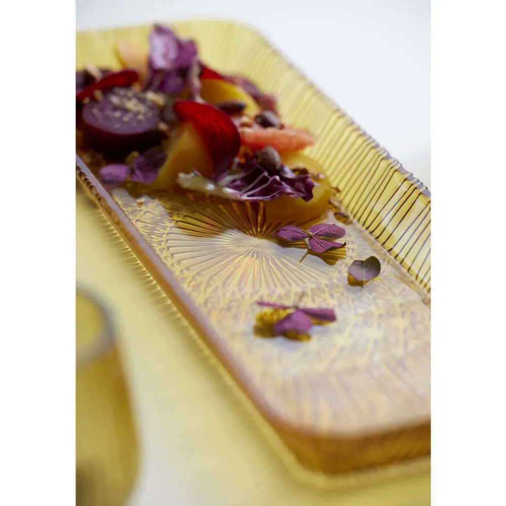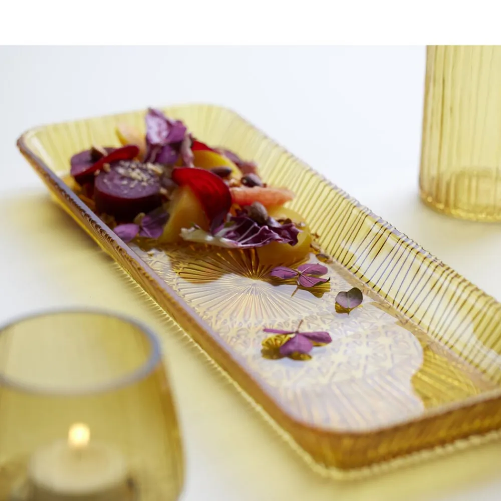 Med et smukt fad fremhæver du dine lækre serveringer. Anret fx en lækker salat på det rektangulære serveringsfad i gennemfarvet glas eller brug det til anretninger af saftigt kød, skåret frugt eller små søde sager. Velegnet til opvaskemaskine. 38 x 14 cm. Når du køber fra Kusintha-kollektionen, støtter du udsatte børn i verdens fattigste områder.