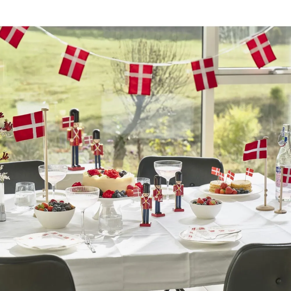 Sæt flag på bordet, så alle kan se, at der er noget at fejre. Den 40 cm høje flagstang er fremstillet i egetræ og har et dansk flag i bomuld, der måler 12,5 x 9,5 cm. Basen har en diameter på 10 cm, hvorunder du finder et fint udskåret logo.