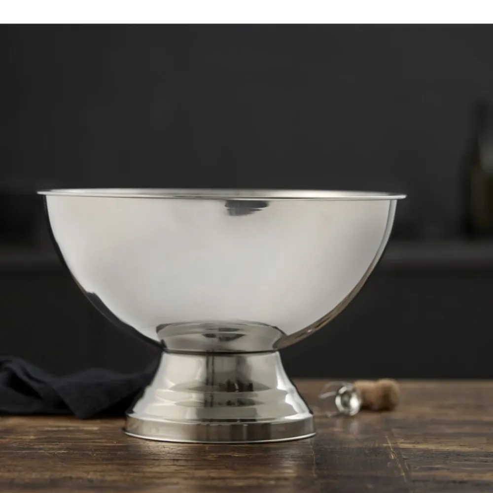 Champagnekøler på fod. Fremstillet i stål, mat indeni og blankpoleret udvendigt.