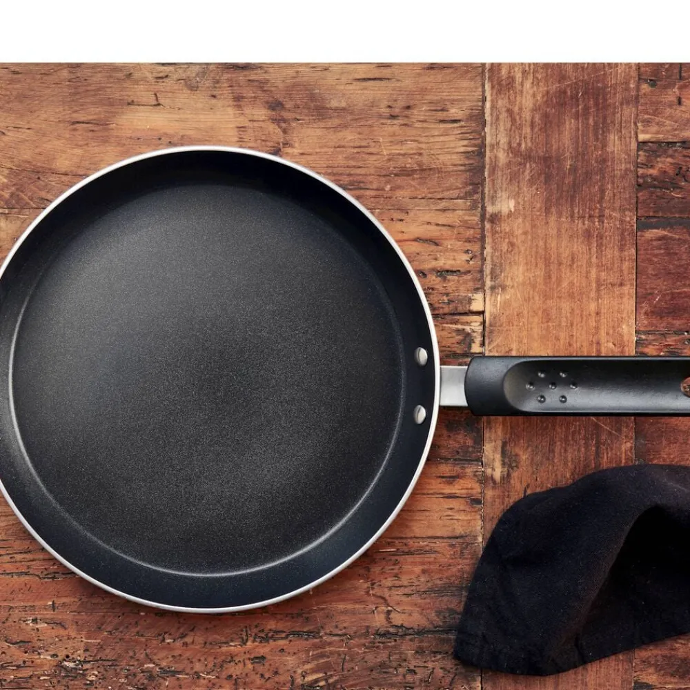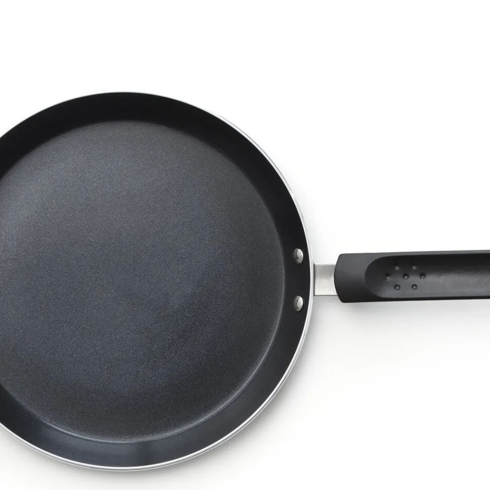 Fremstillet i aluminium med en bundtykkelse på 3 mm og en 2-lags keramisk belægning indvendigt, der sikrer, at pandekagerne slipper let. For at forlænge belægningens levetid anbefales brug af redskaber i træ eller plast. Kan anvendes på alle varmekilder.
