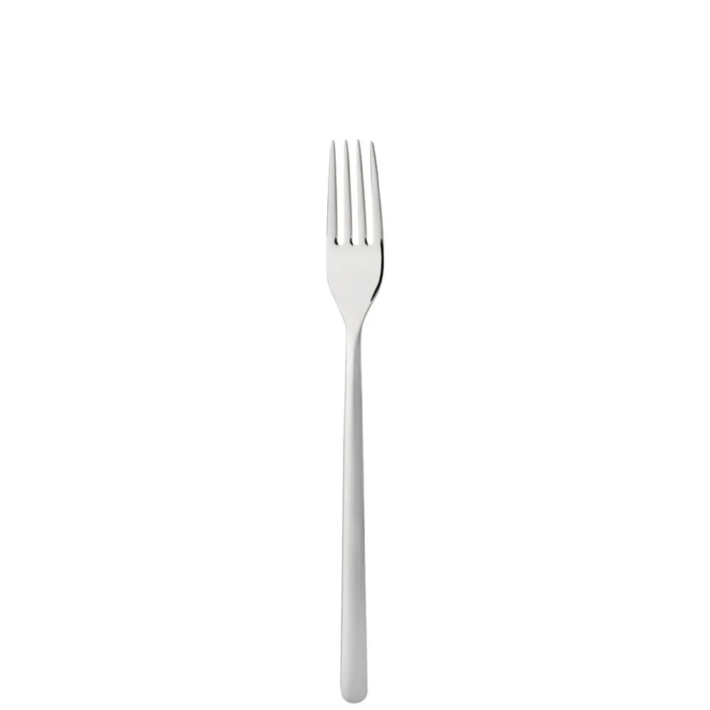 Med sin enkelhed og lange linjer understreger de bløde skulpturelle kurver og de roligt udformede detaljer den moderne og nordiske sans. Et underspillet, rent design skaber et elegant bestik, der nærmest svæver over bordet.